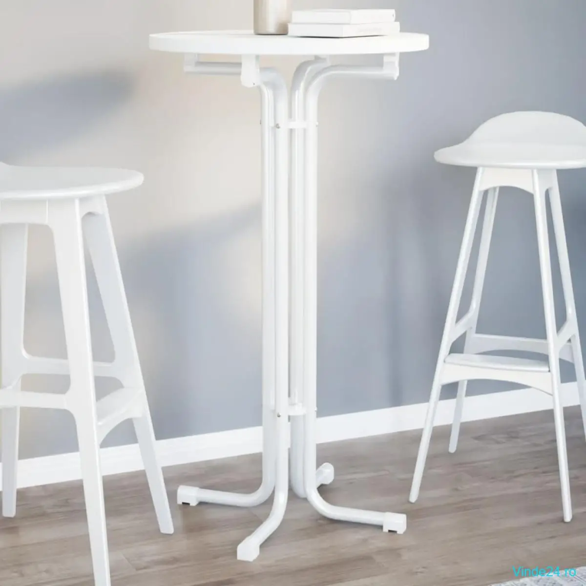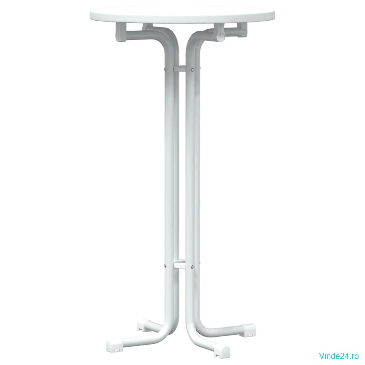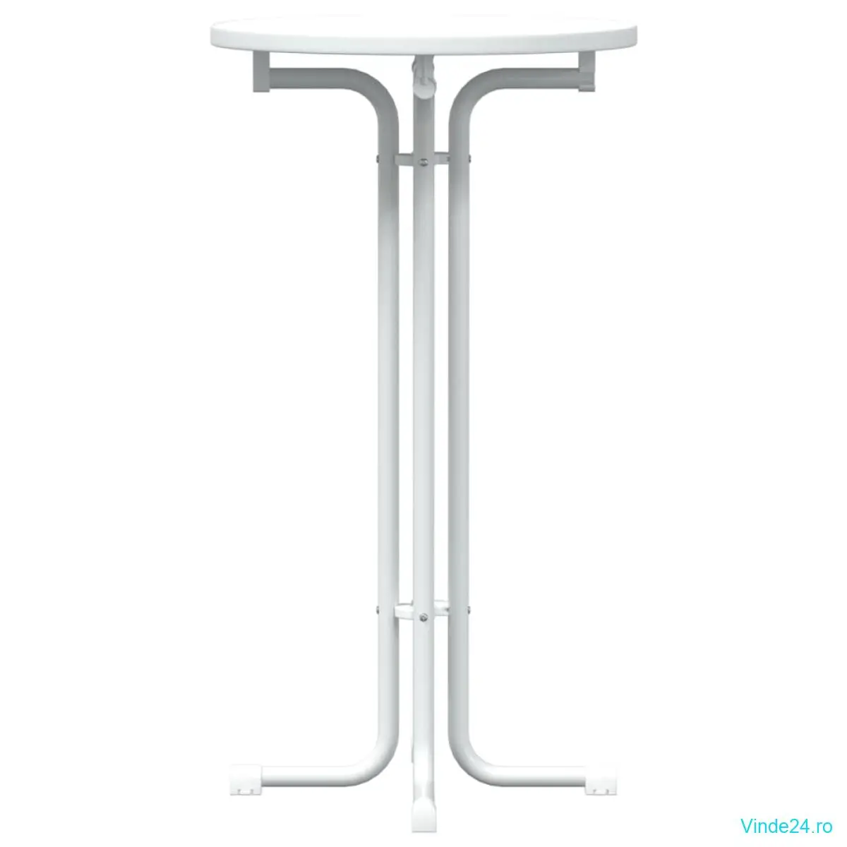 vidaXL Masă de bucătărie, alb, Ø60x110 cm, lemn prelucrat și oțel