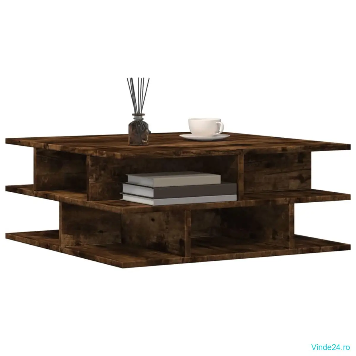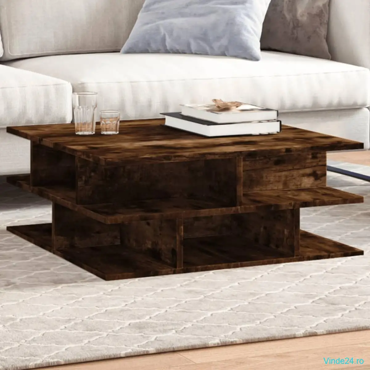 vidaXL Masă de cafea, stejar fumuriu, 70x70x29 cm, lemn compozit