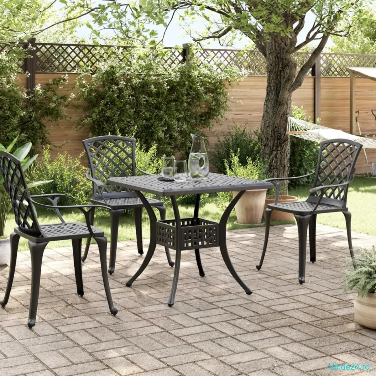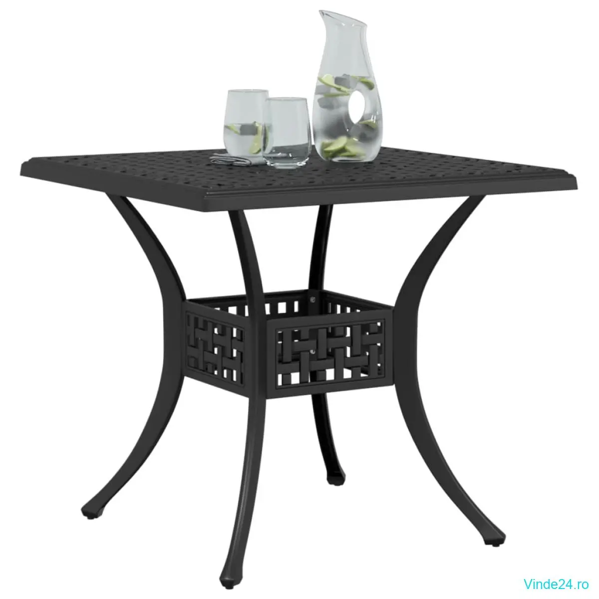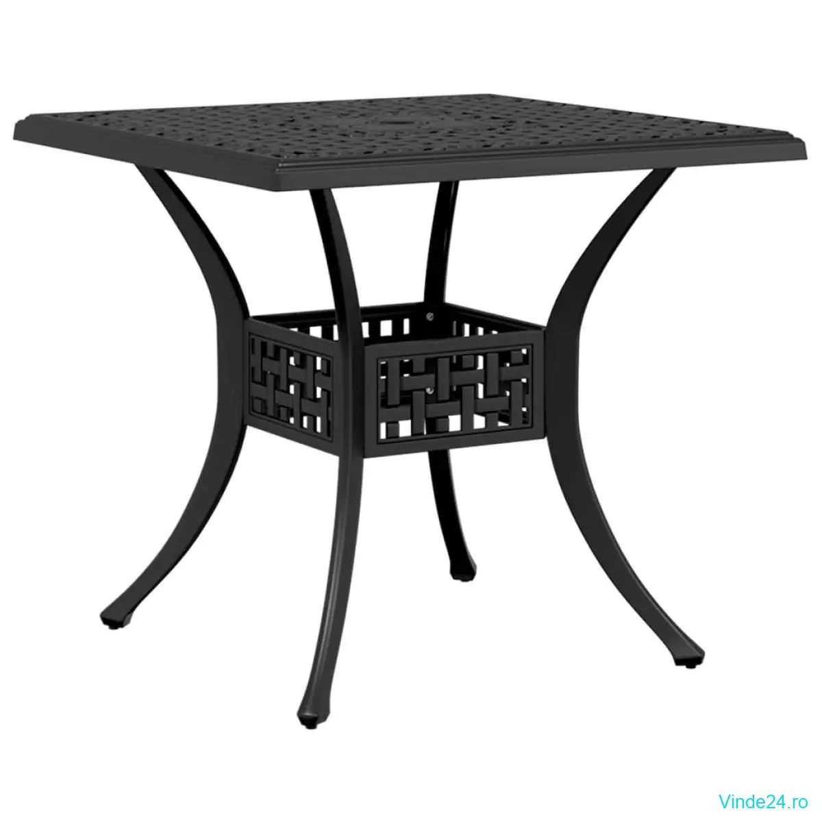 vidaXL Masă de grădină, negru, 80x80x75 cm, aluminiu turnat