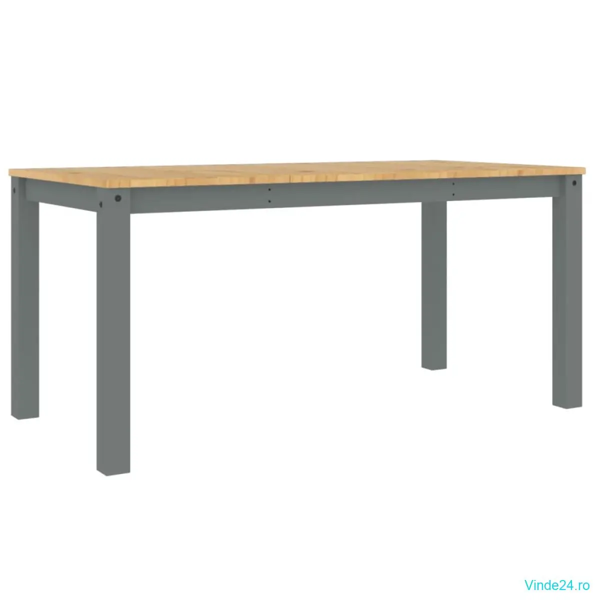 vidaXL Masă de sufragerie „Panama”, gri, 160x80x75 cm, lemn masiv pin
