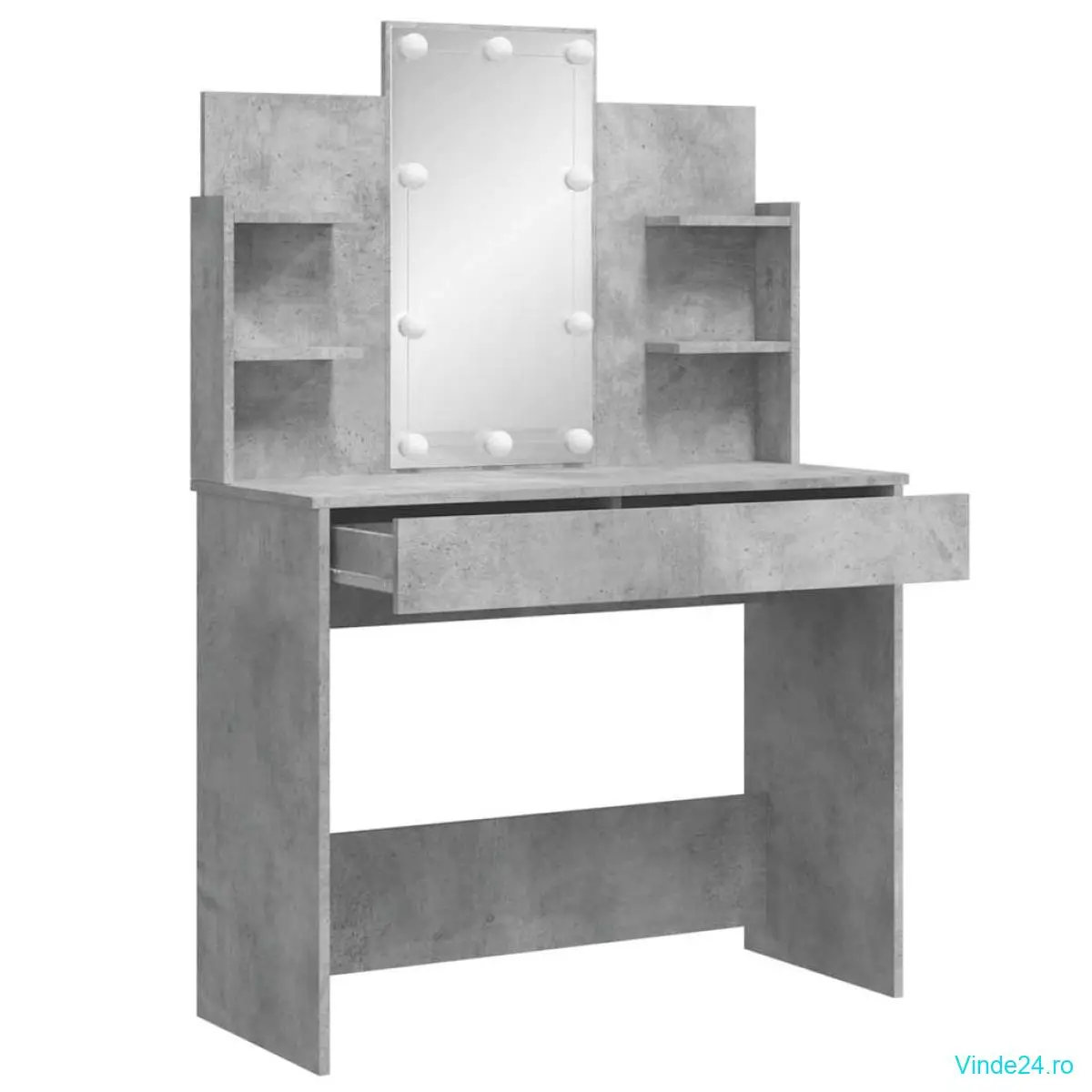 • Material stabil: Lemnul compozit este de o calitate excepțională, cu suprafață netedă și prezentând, de asemenea, durabilitate, stabilitate și rezistență la umiditate. Fabricată din lemn prelucrat, această masă de machiaj este ușor de curățat.