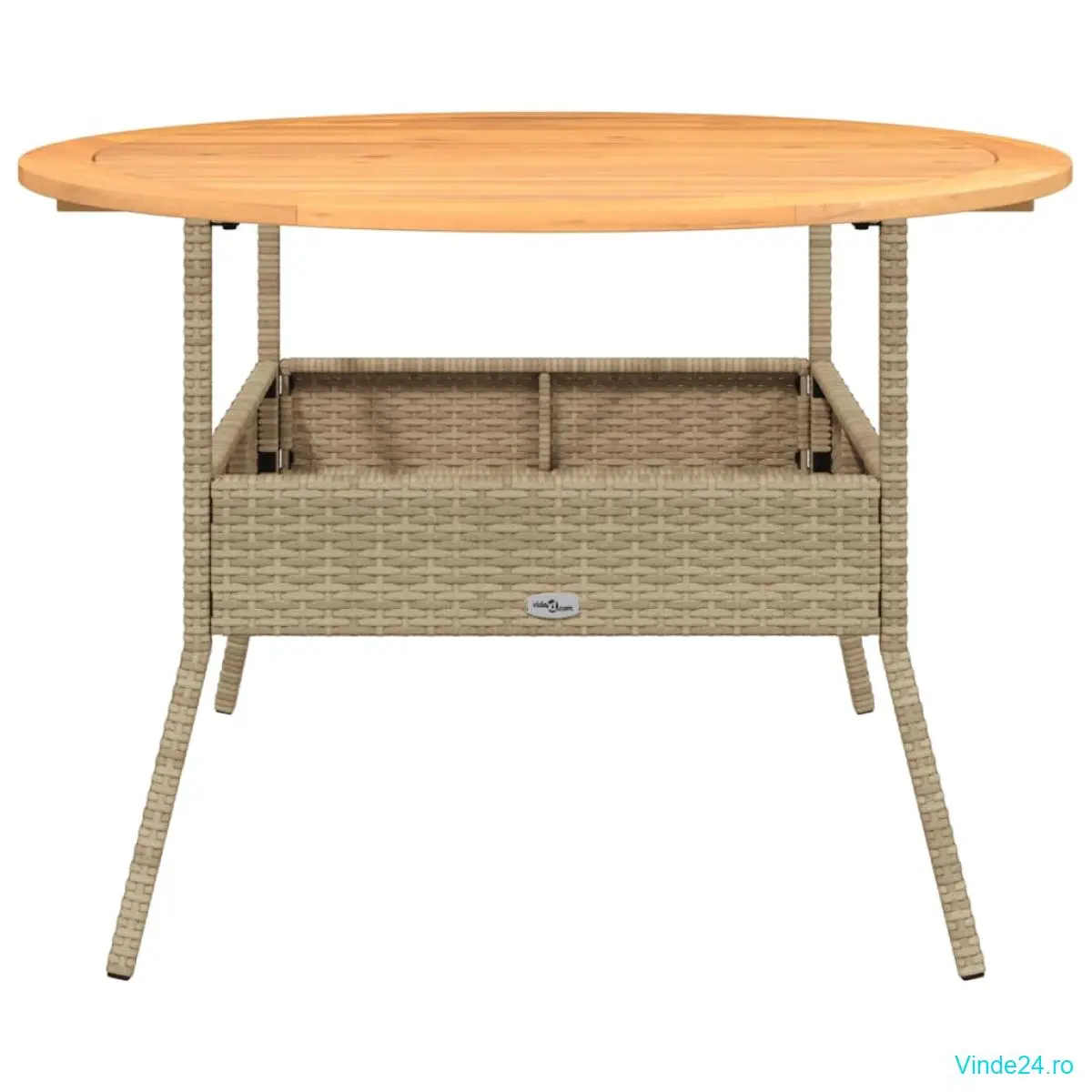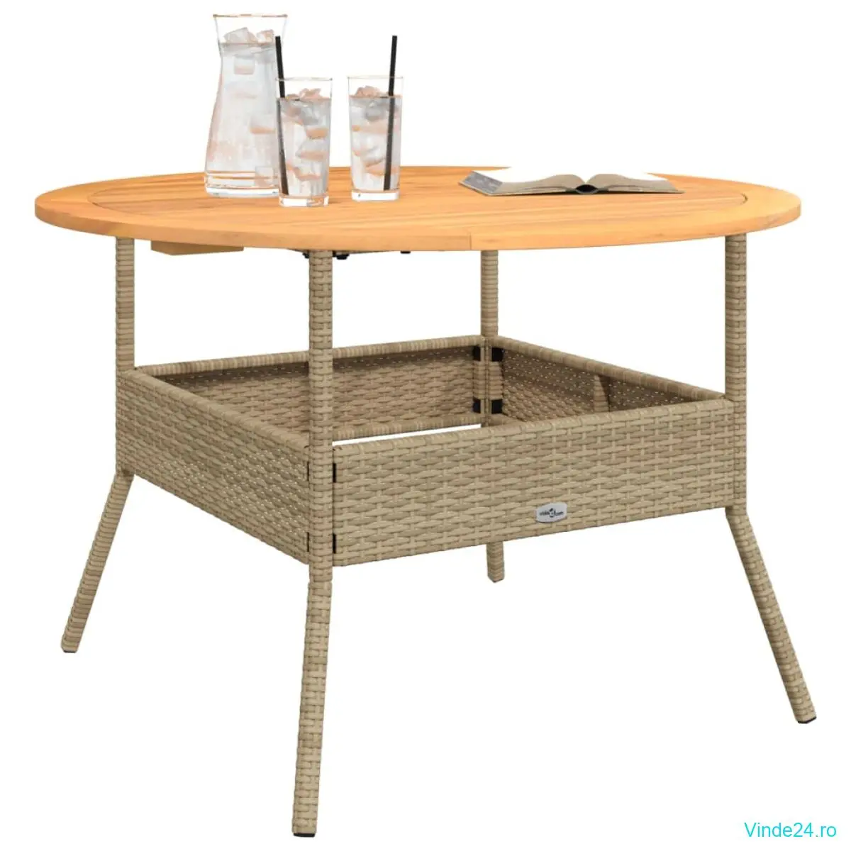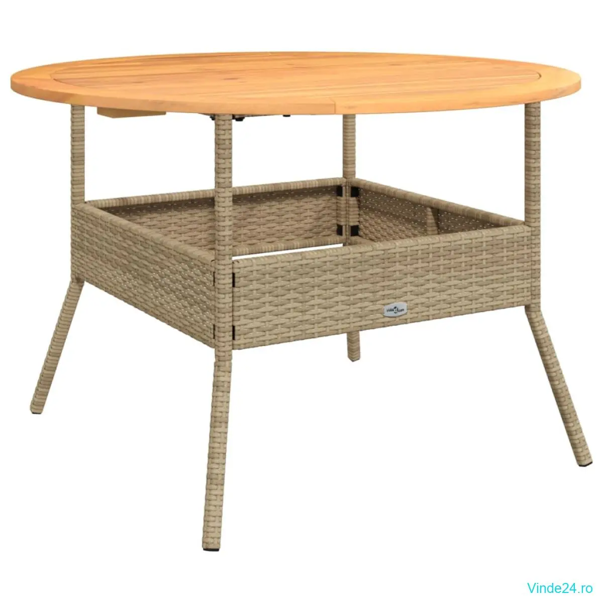 vidaXL Masă grădină, blat din lemn acacia, bej, Ø110x71 cm poliratan