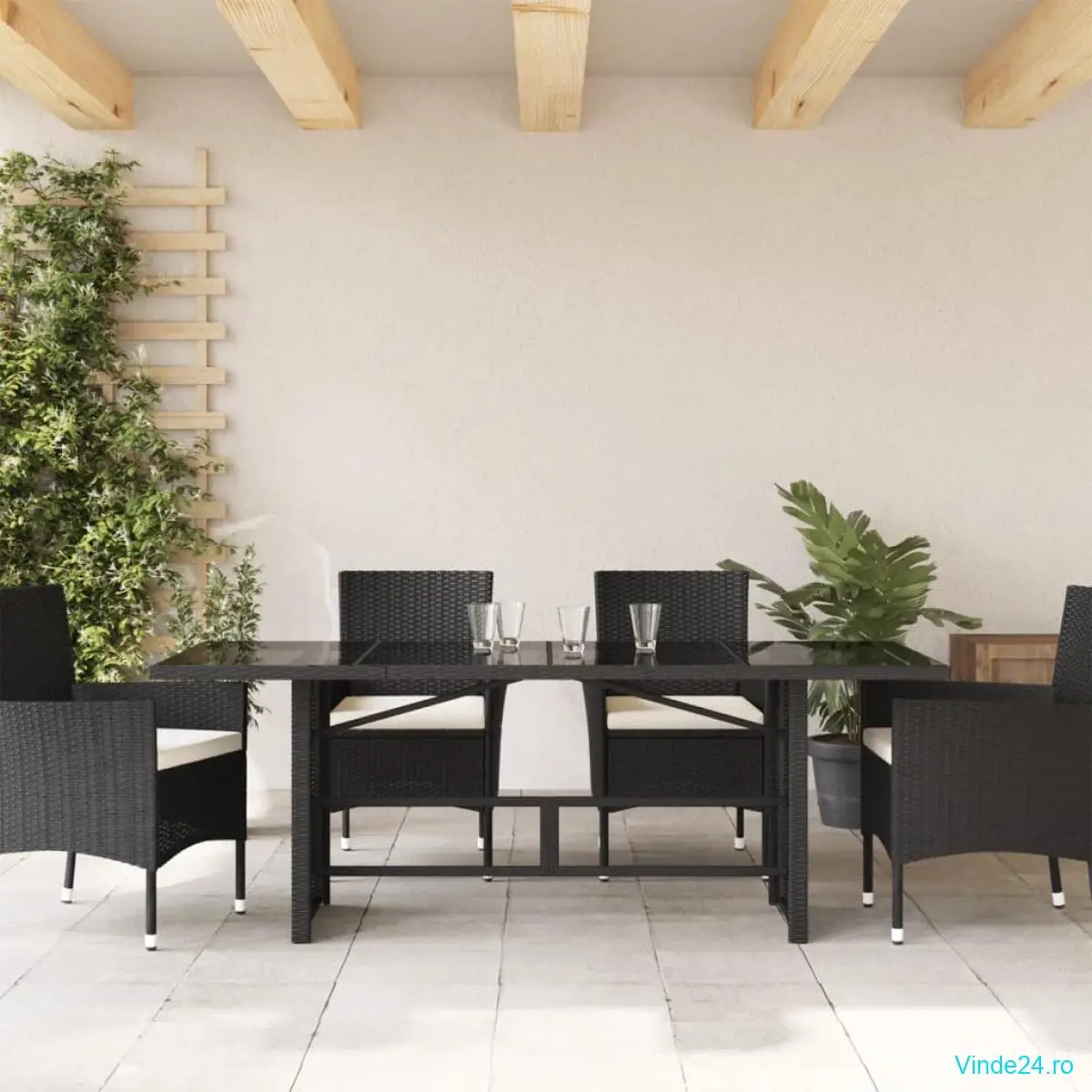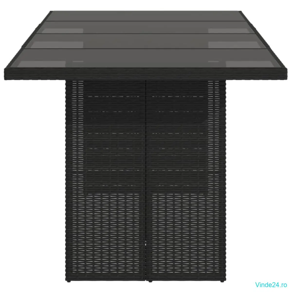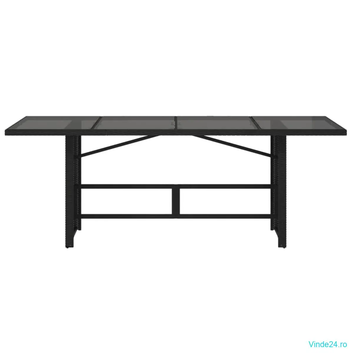 vidaXL Masă grădină cu blat din sticlă, negru, 190x80x75 cm, poliratan