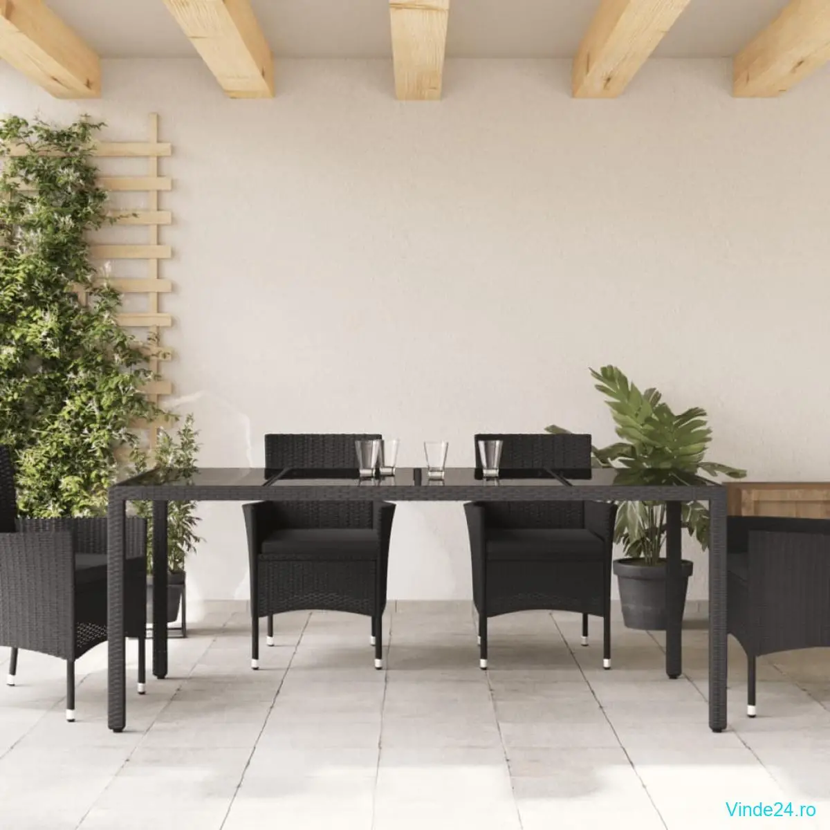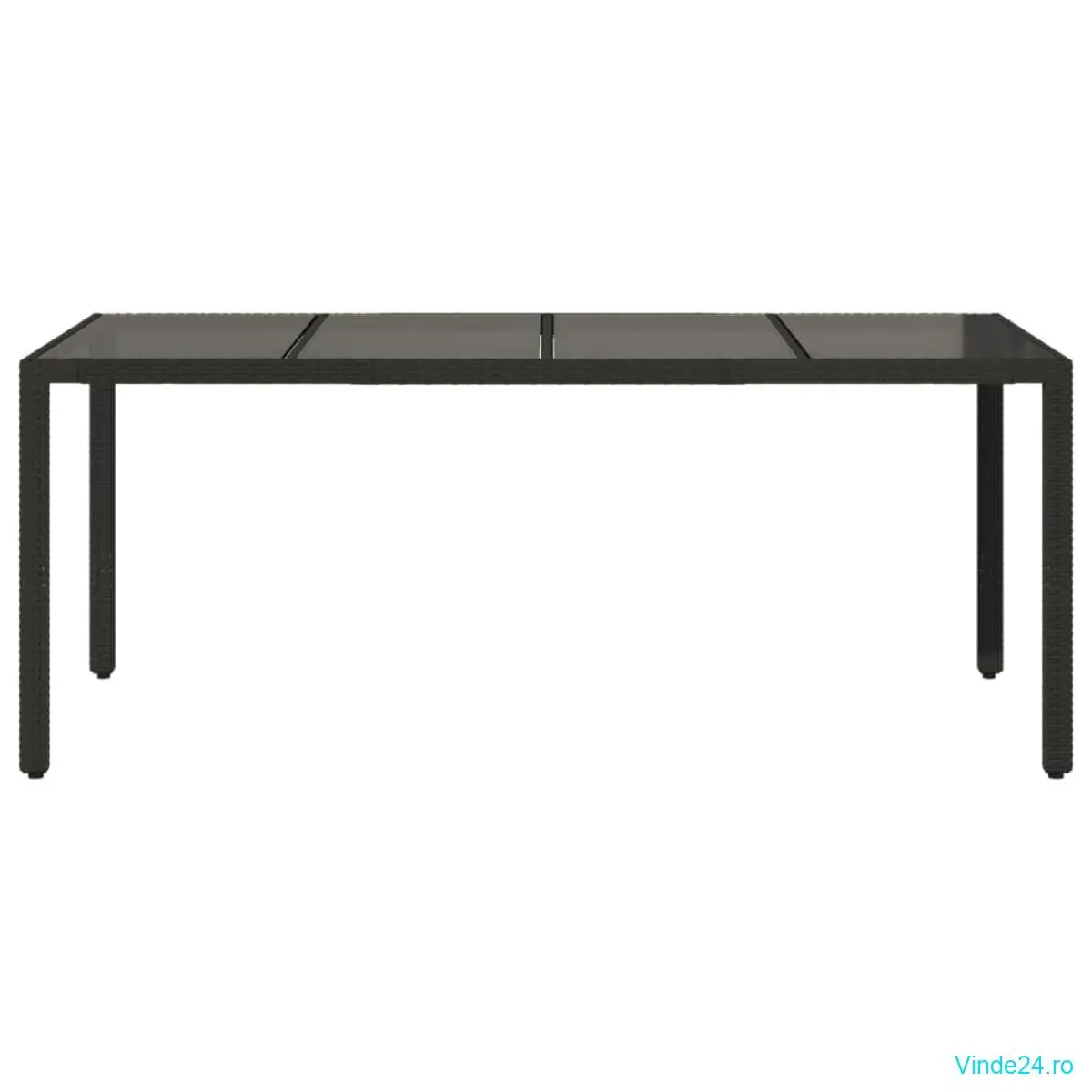 vidaXL Masă grădină cu blat din sticlă, negru, 190x90x75 cm, poliratan