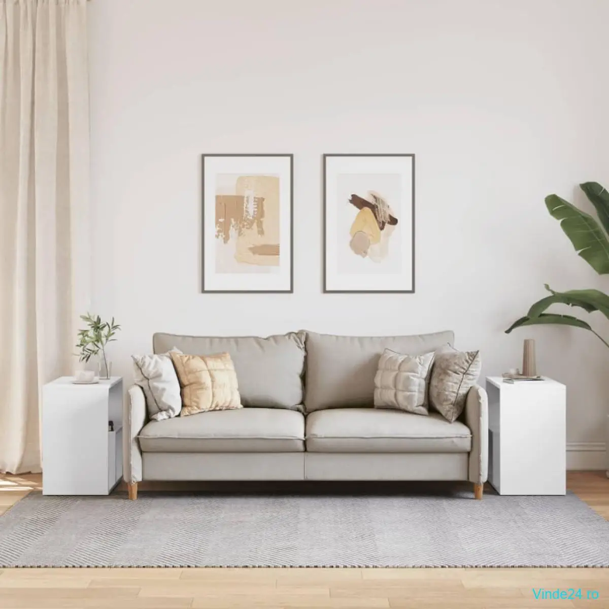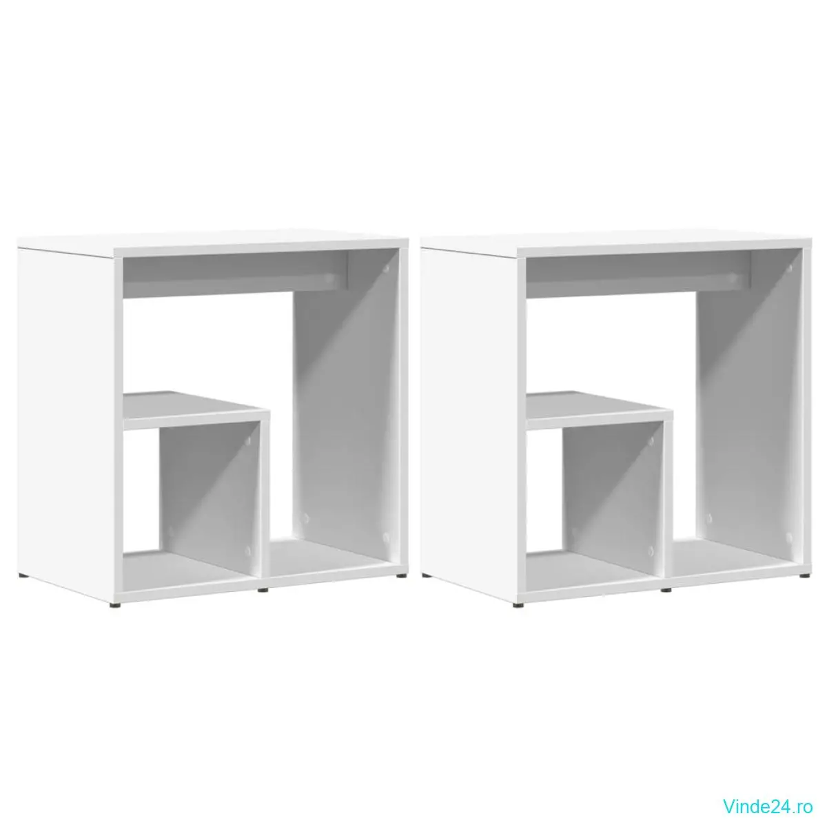 vidaXL Masă laterală, 2 buc., alb, 50x30x50 cm, lemn prelucrat