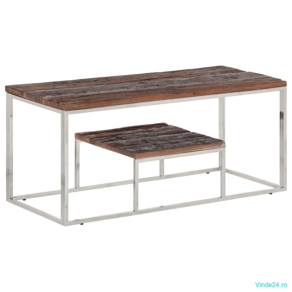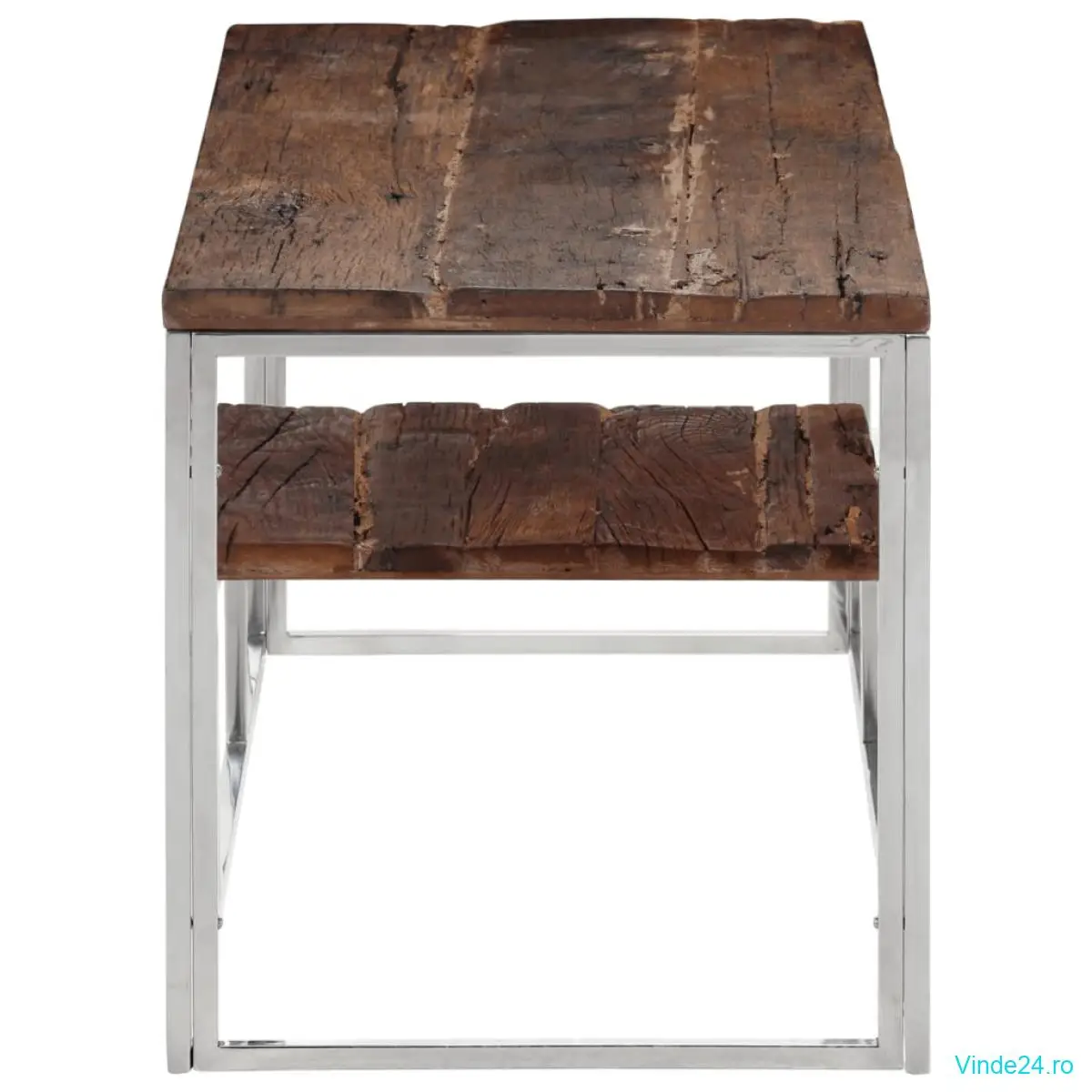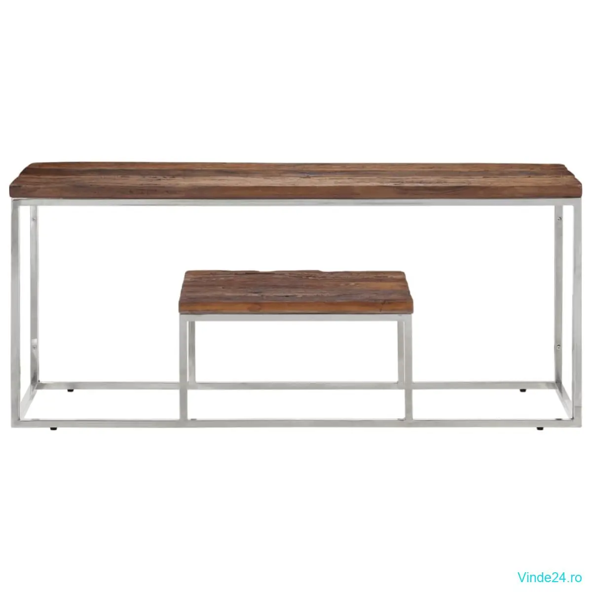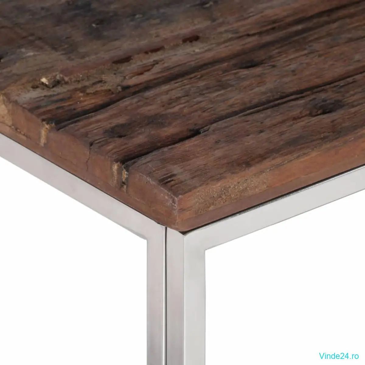 - Blat din traverse de lemn masiv: Blatul mesei laterale oferă o suprafață sigură și amplă pentru a plasa gustări, băuturi, vaze, boluri cu fructe sau alte obiecte decorative.