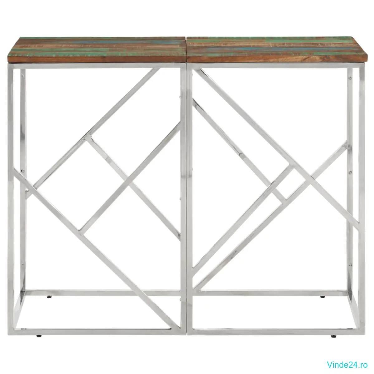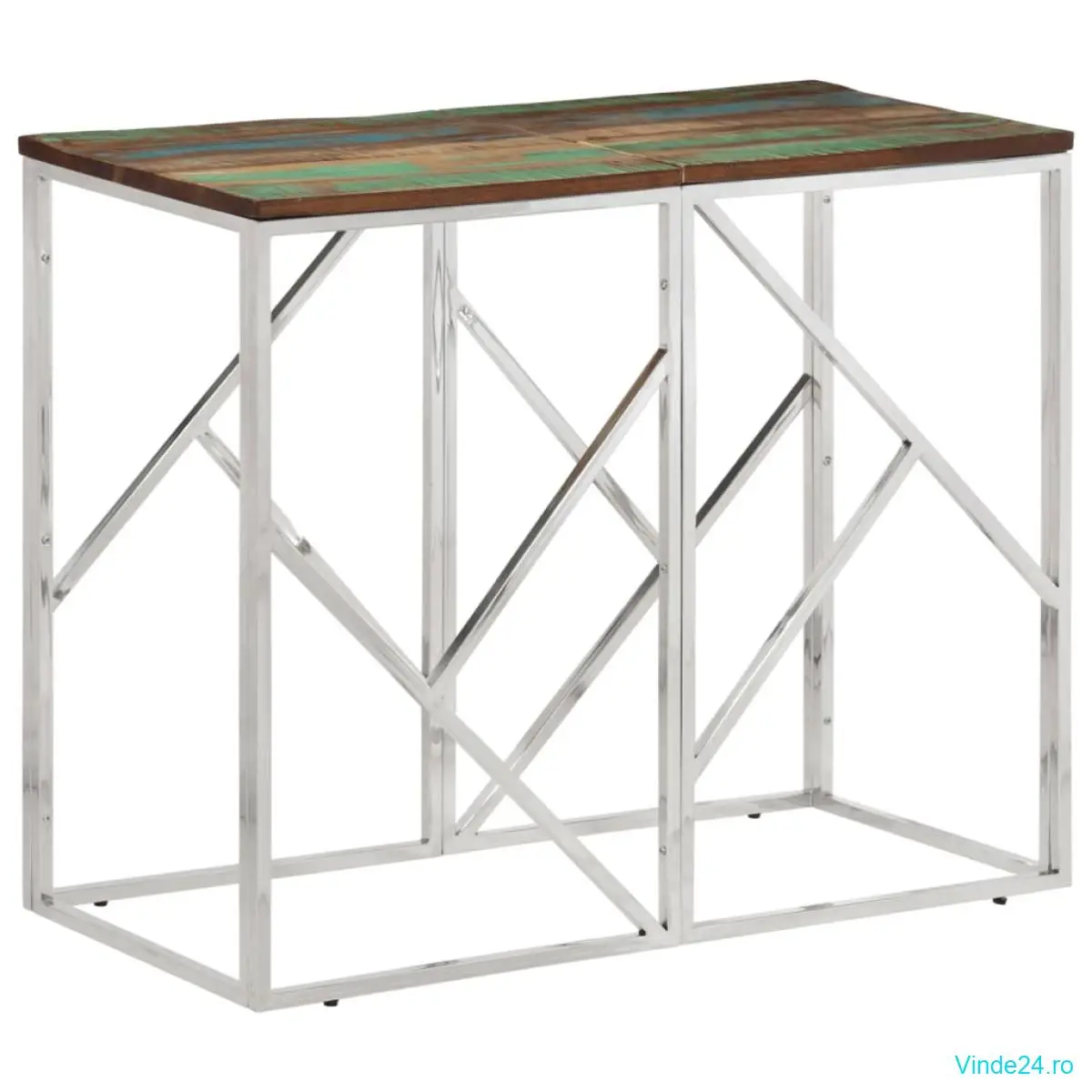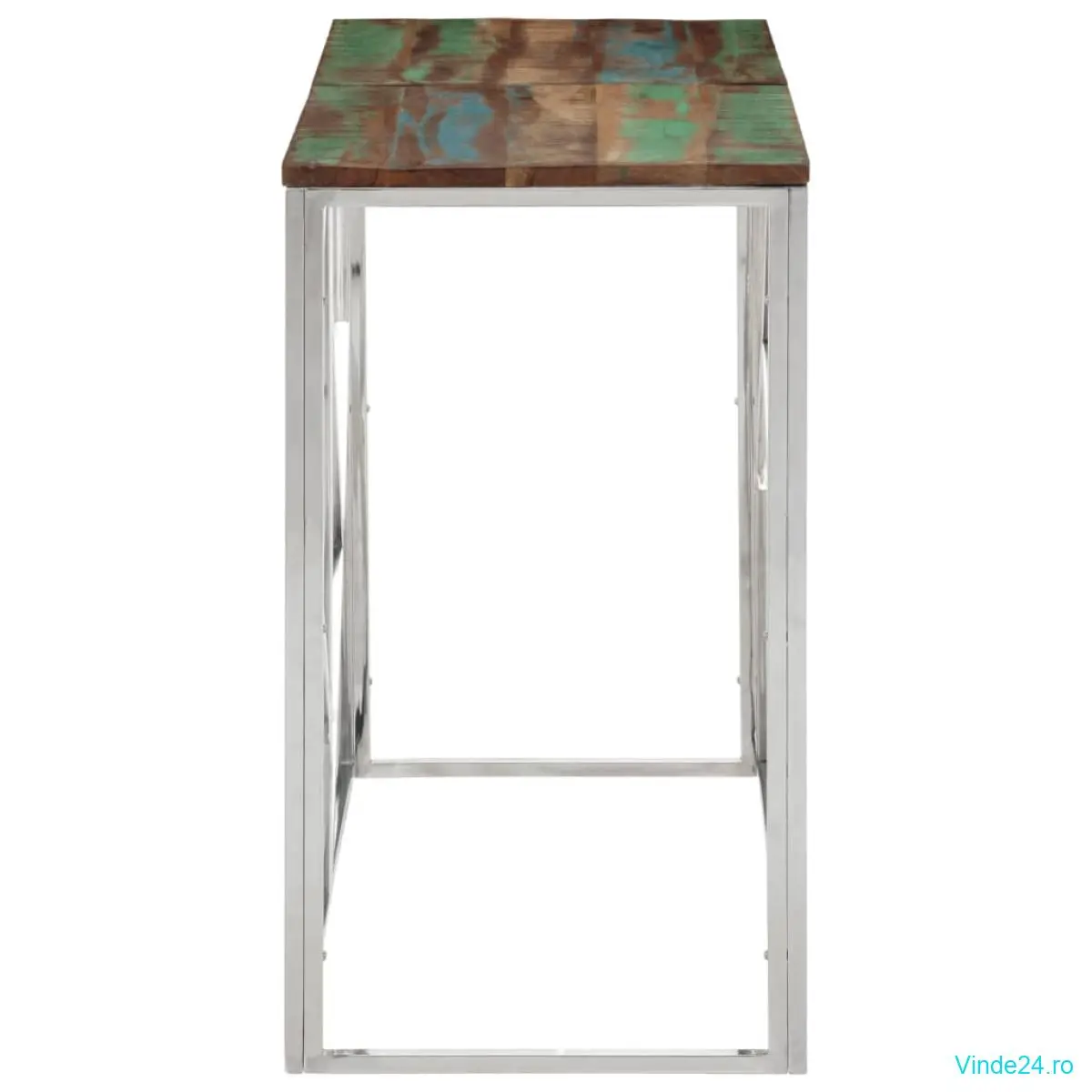 vidaXL Măsuță consolă, argintiu, oțel inoxidabil/lemn masiv reciclat