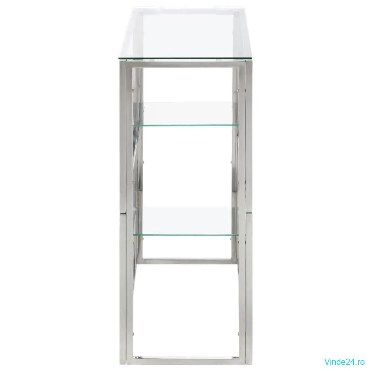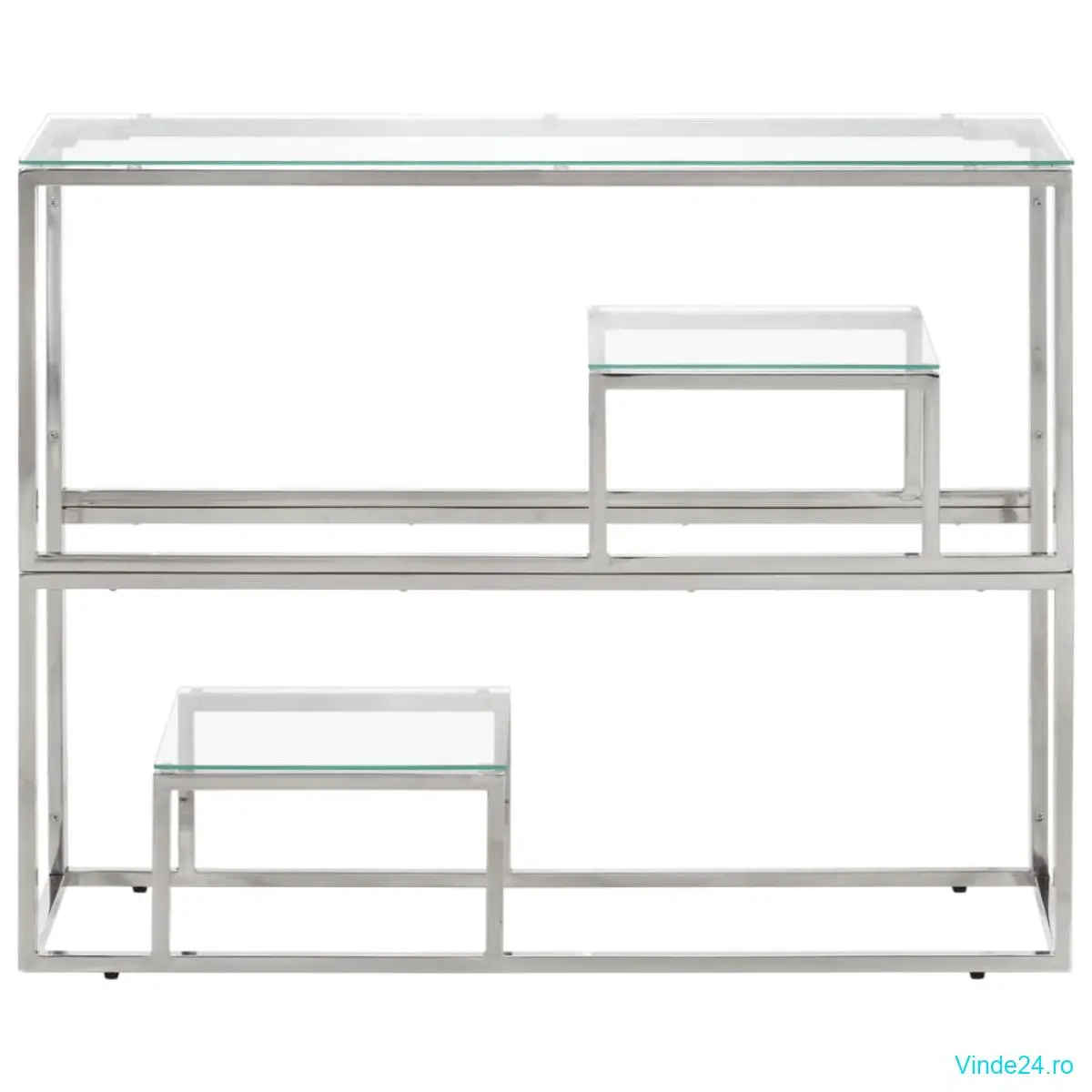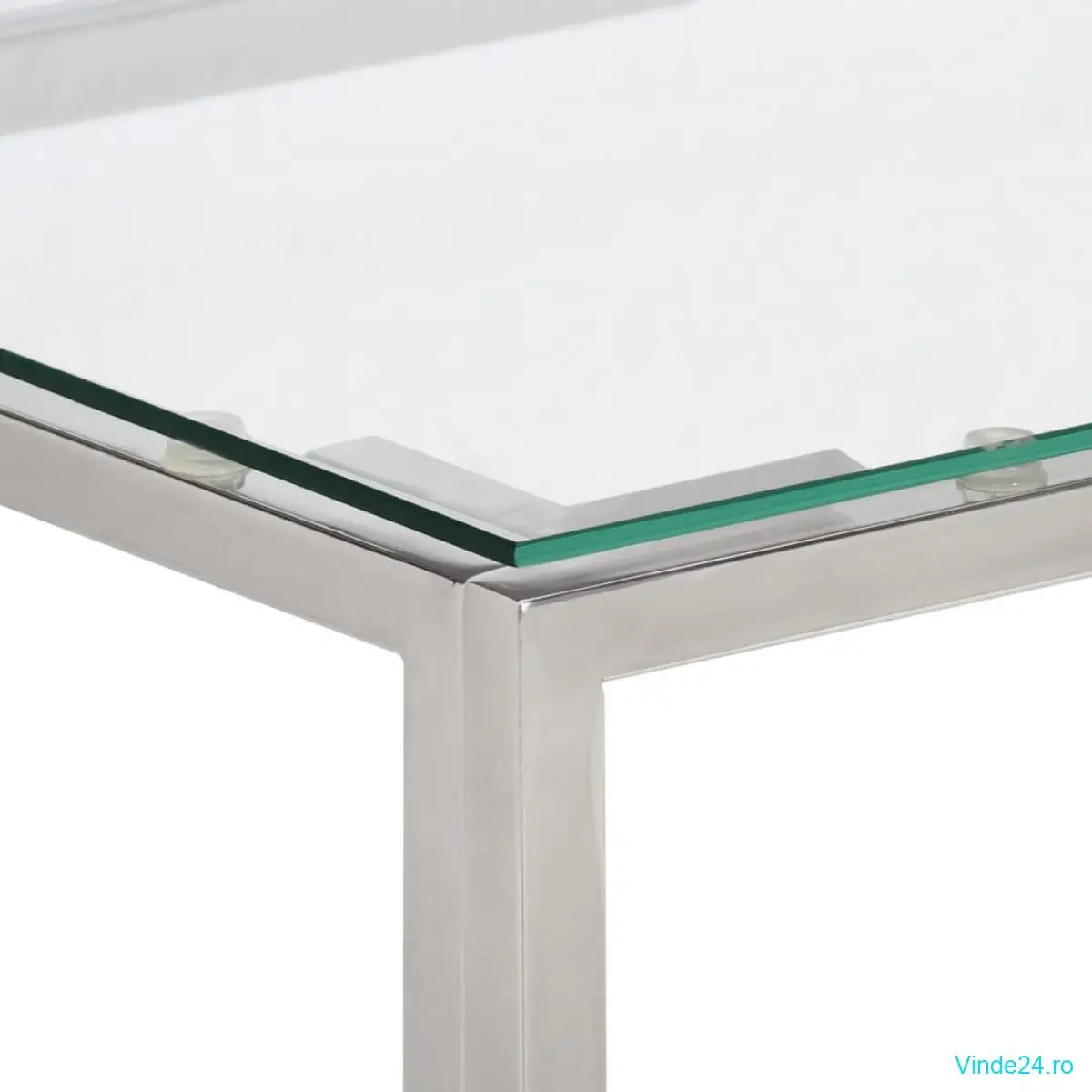 vidaXL Măsuță consolă, oțel inoxidabil argintiu și sticlă securizată
