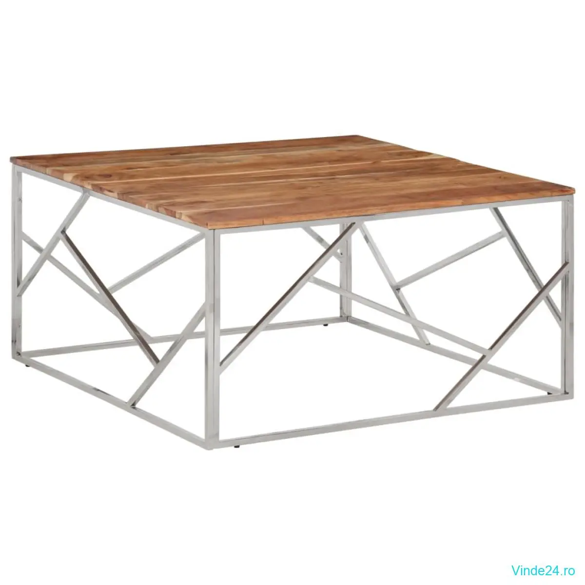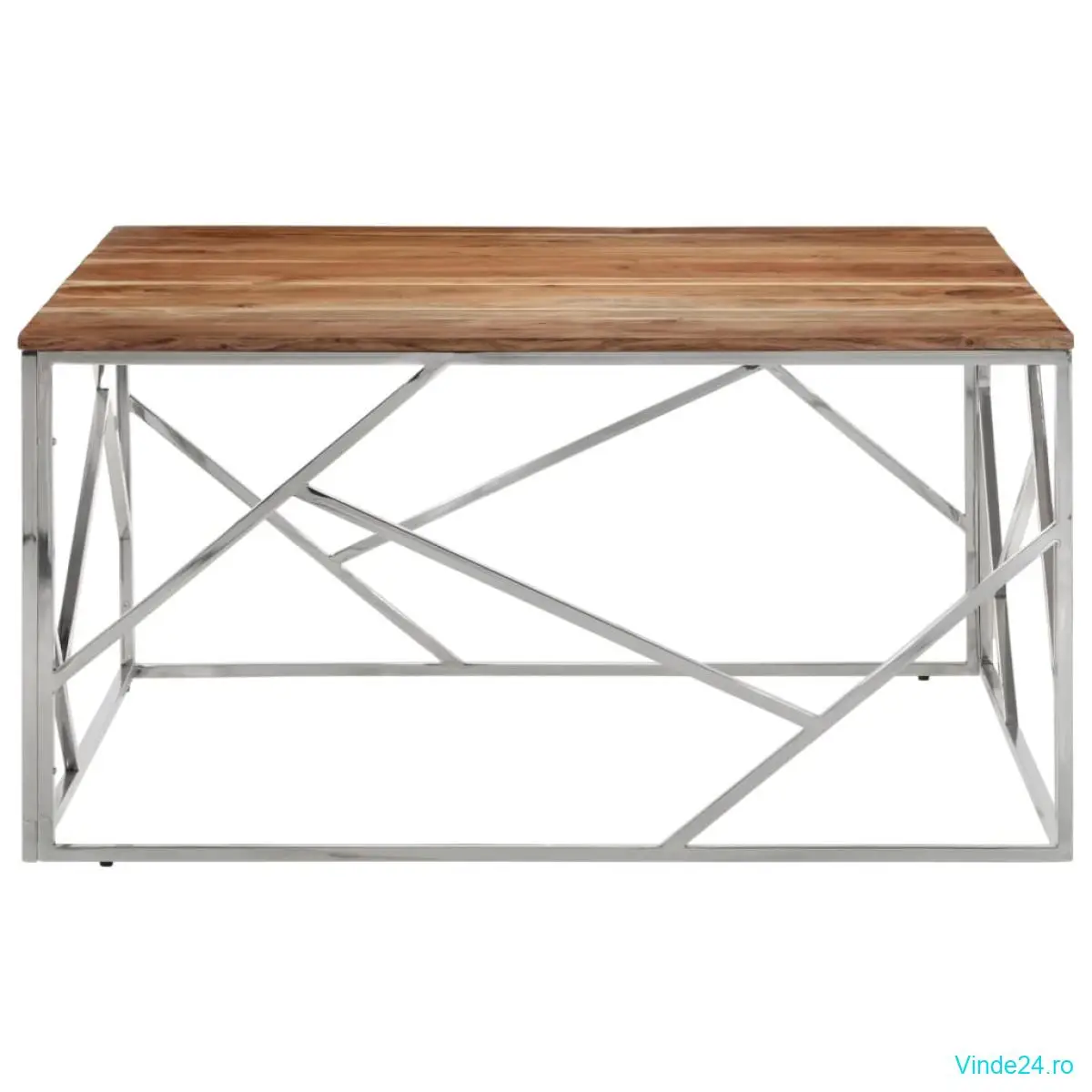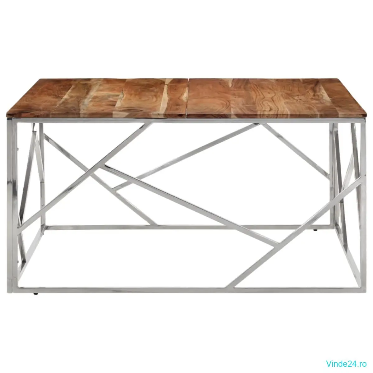 vidaXL Măsuță de cafea, argintiu, oțel inoxidabil și lemn masiv acacia