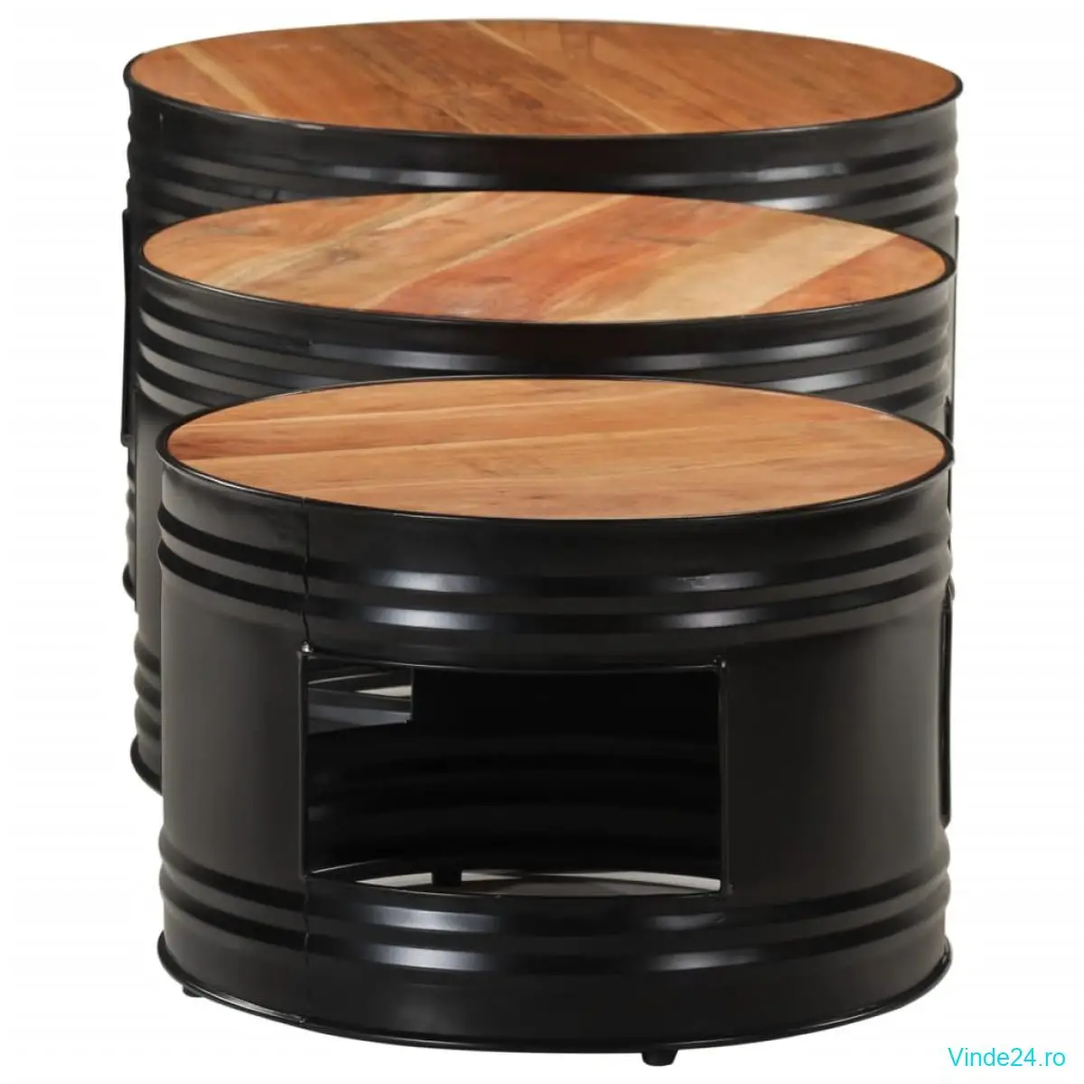 vidaXL Mese de bar în formă de tobă, 3 buc., lemn masiv de acacia