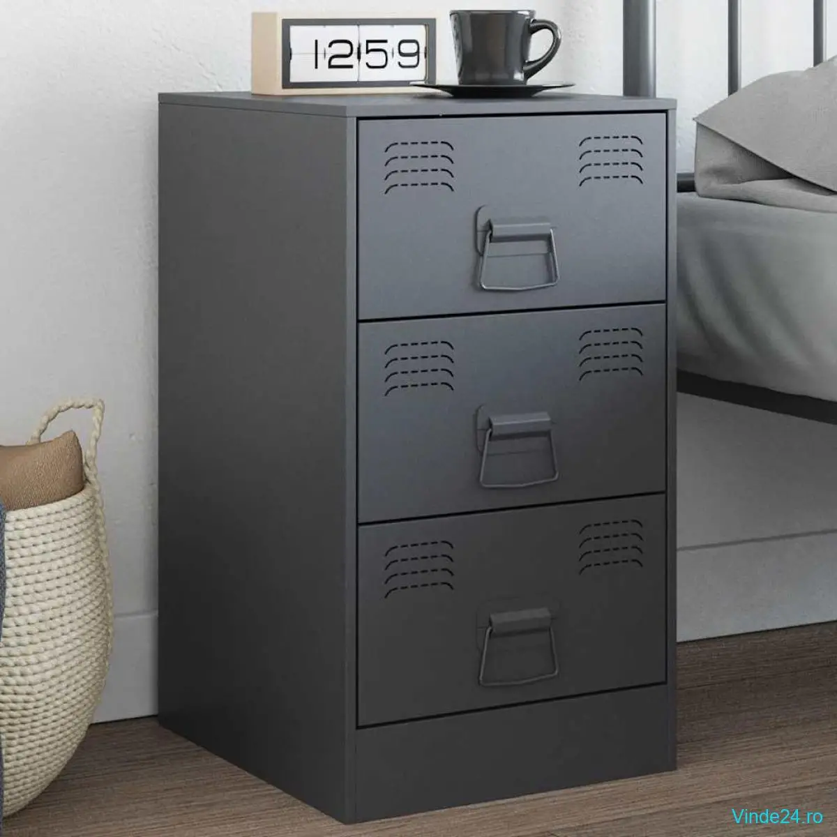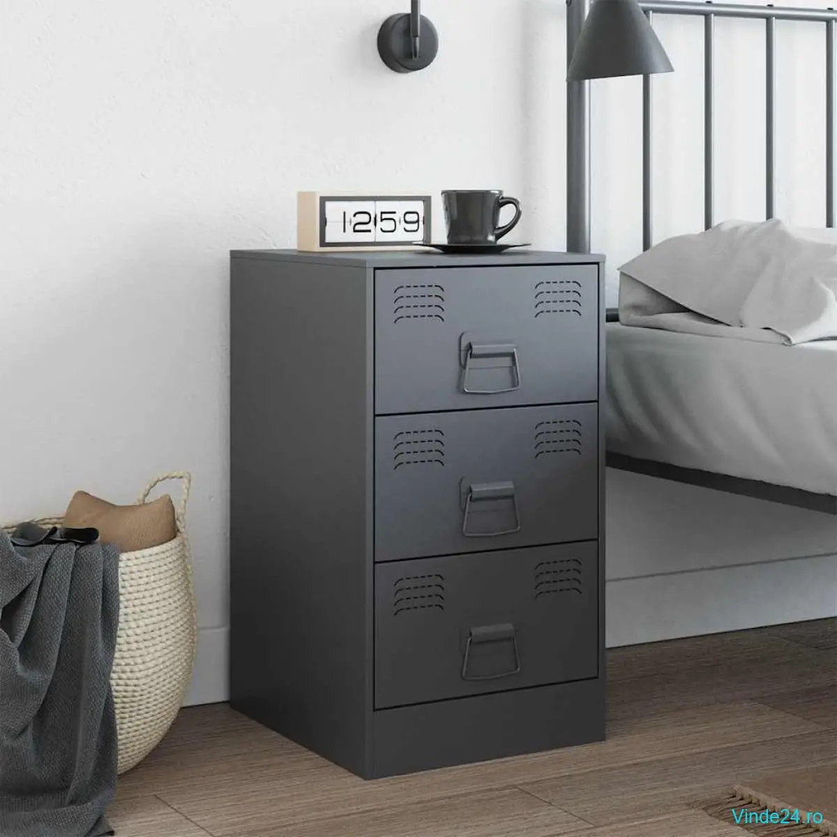 vidaXL Noptieră, antracit, 34,5x39x62 cm, oțel