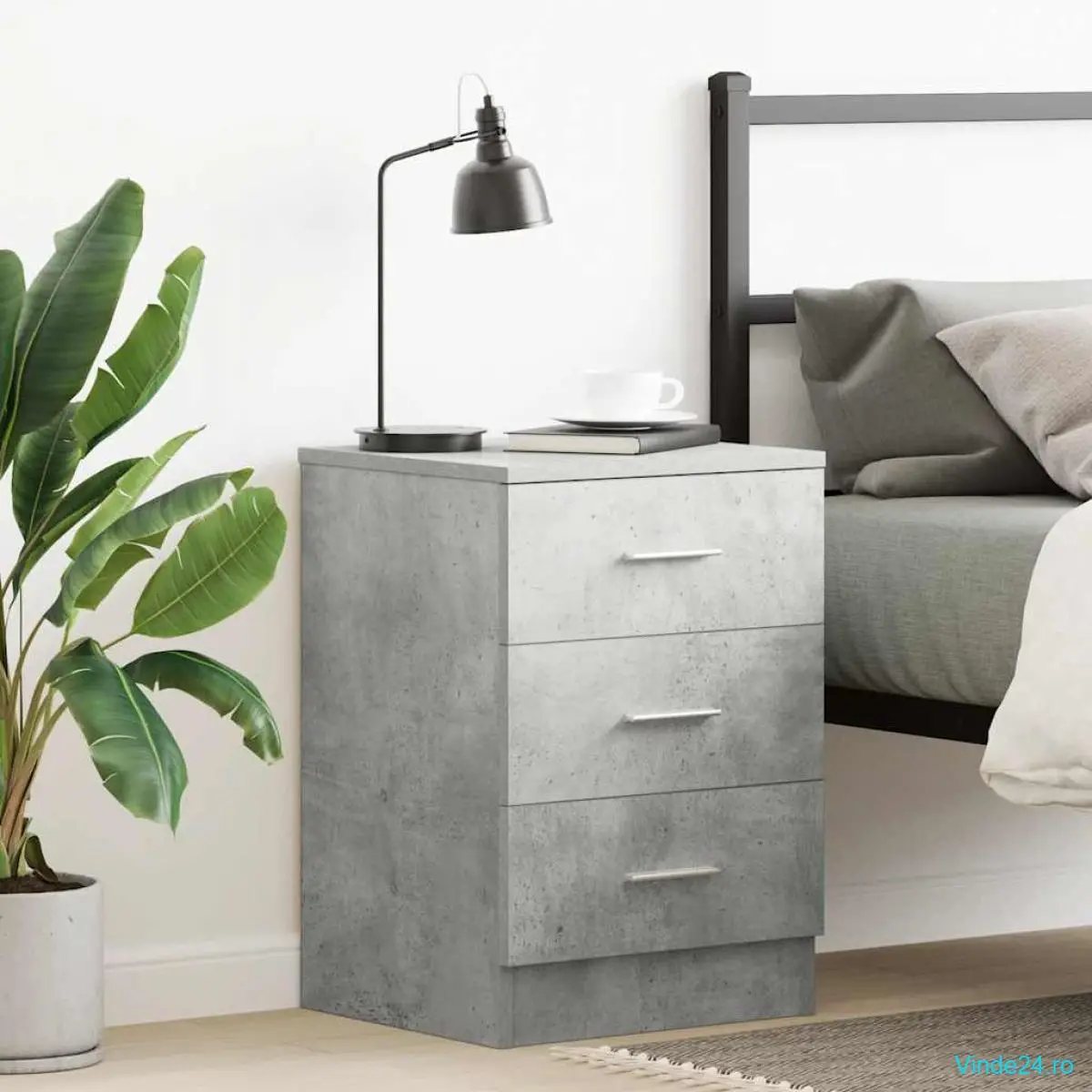 vidaXL Noptieră, gri beton, 38x35x56 cm, lemn prelucrat
