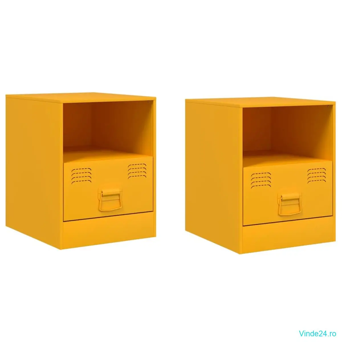 vidaXL Noptiere, 2 buc., galben muștar, 34,5x39x44 cm, oțel