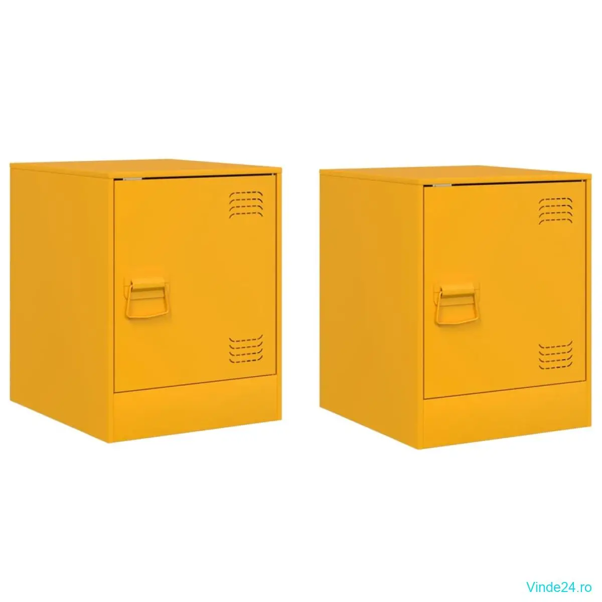 vidaXL Noptiere, 2 buc., galben muștar, 34,5x39x44 cm, oțel