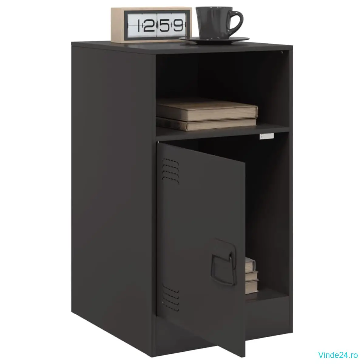 vidaXL Noptieră, negru, 34,5x39x44 cm, oțel