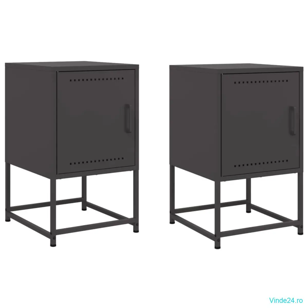 vidaXL Noptiere, 2 buc., negru, 36x39x60,5 cm, oțel