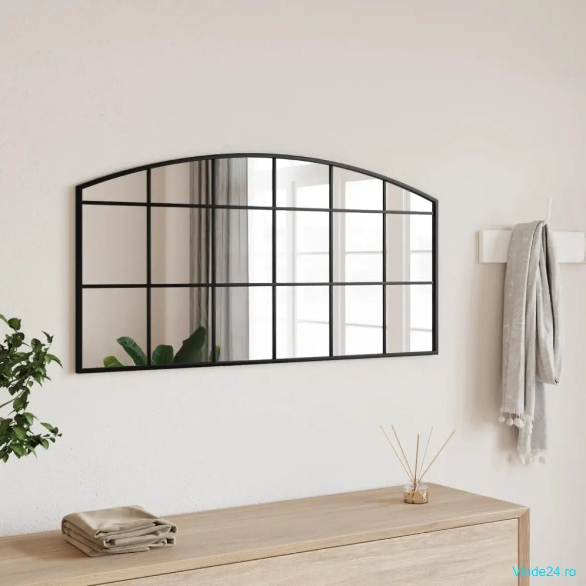 vidaXL Oglindă de perete, negru, 100x50 cm, arcuită, fier