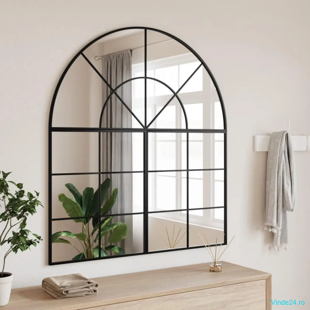 vidaXL Oglindă de perete, negru, 100x50 cm, arcuită, fier