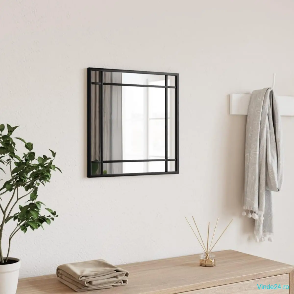 vidaXL Oglindă de perete, negru, 40x40 cm, pătrată, fier