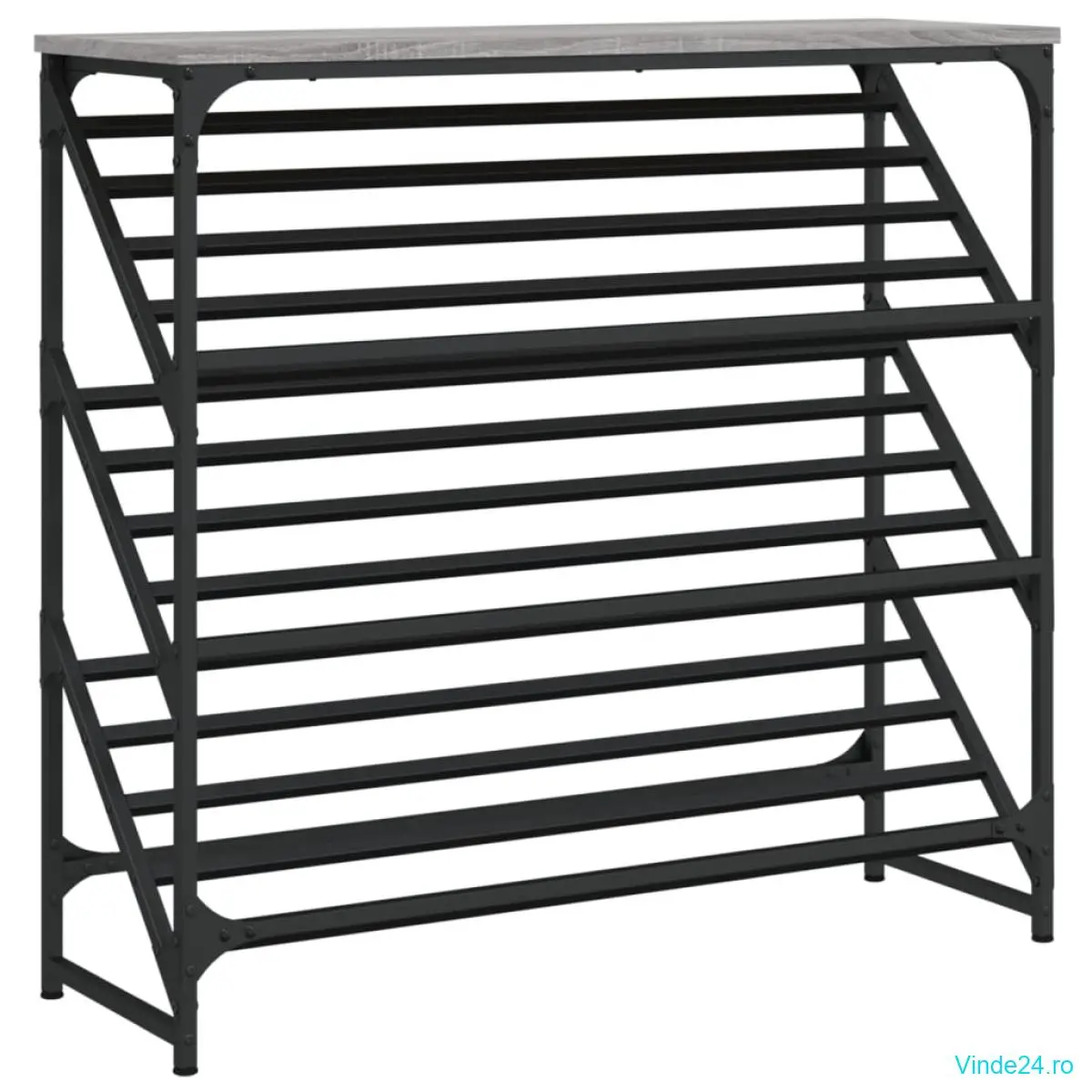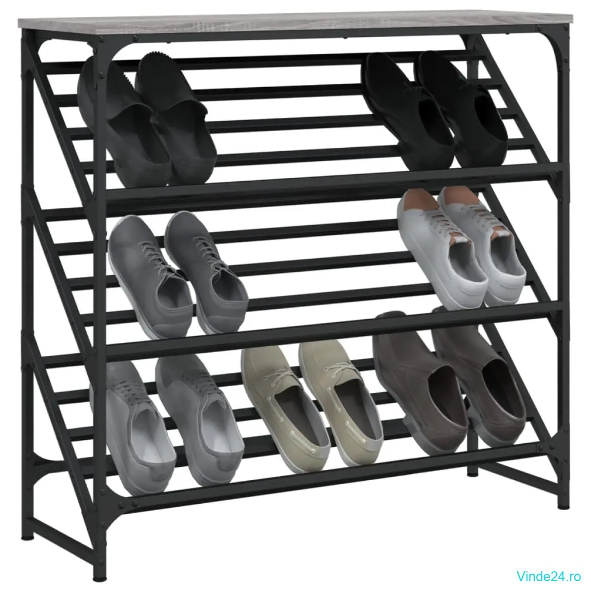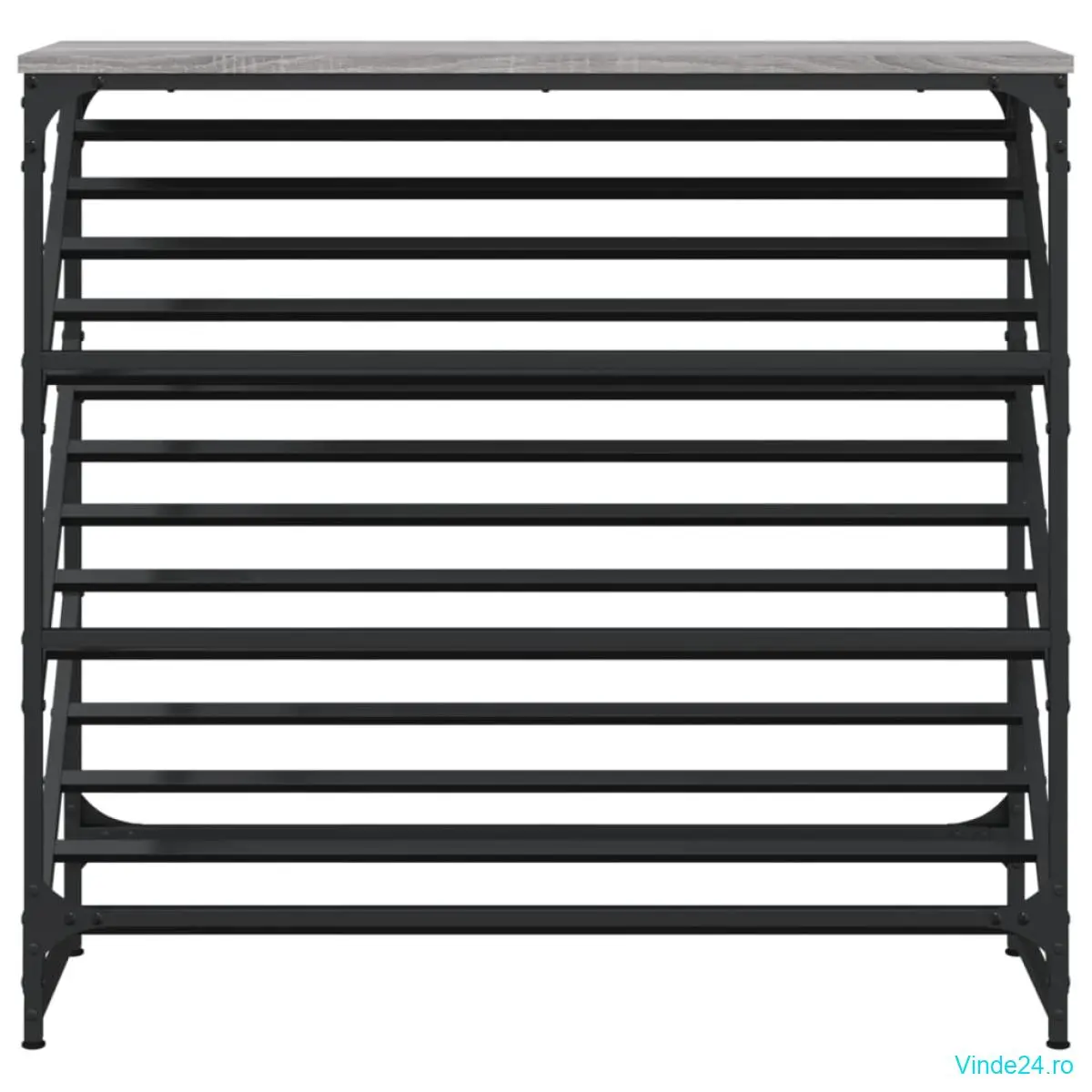 • Cadru stabil: Baza din oțel vopsit electrostatic negru oferă stabilitate și robustețe suplimentare pentru acest depozit de pantofi.