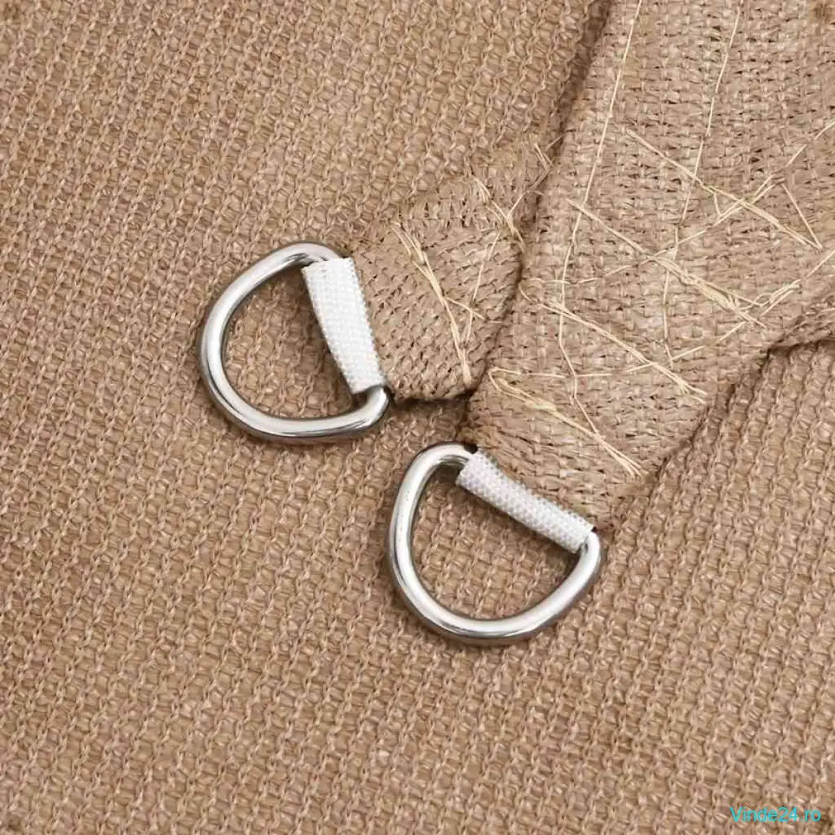 Pânza de parasolar, fabricată din HDPE 100% (polietilenă de înaltă densitate), vă protejează de lumina directă a soarelui, permite un flux suficient de aer și este permeabilă la apă. Materialul HDPE este tratat special, deci este rezistent la mucegai și la raze UV. Parasolarul este ușor de asamblat, datorită elementelor de fixare din oțel inoxidabil la fiecare colț, și a funiilor incluse.