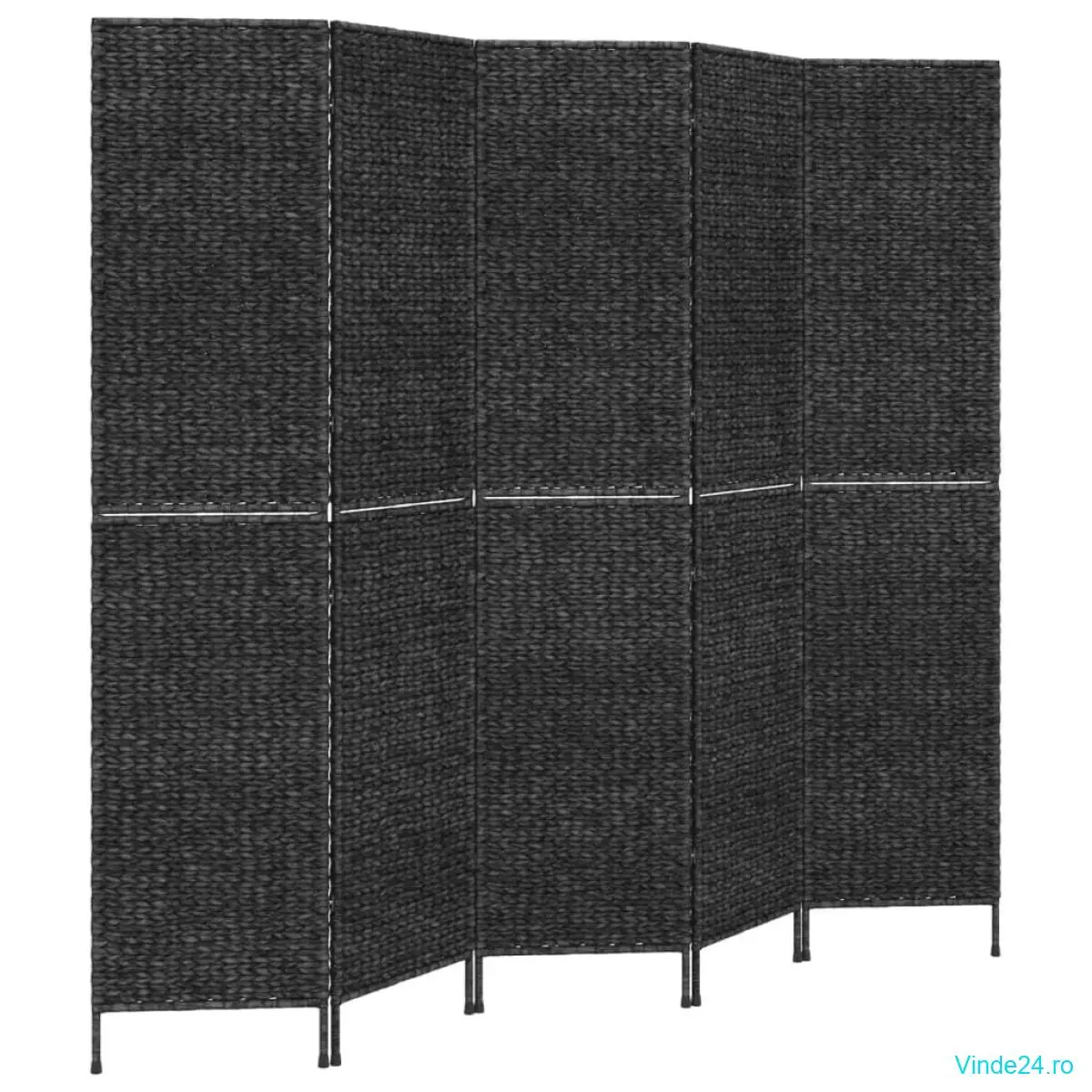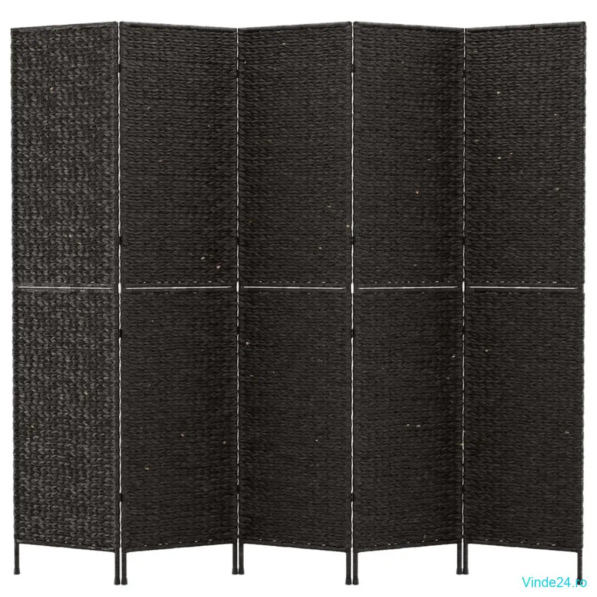 vidaXL Paravan de cameră cu 5 panouri negru 205x180 cm zambilă de apă