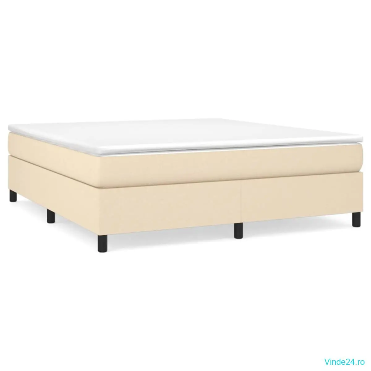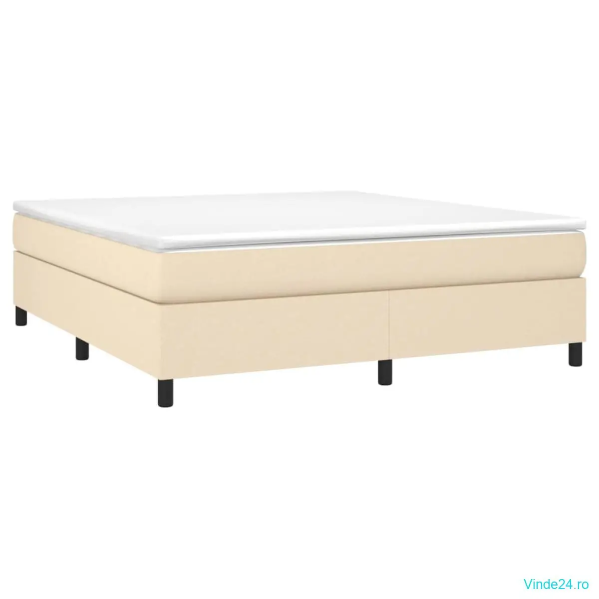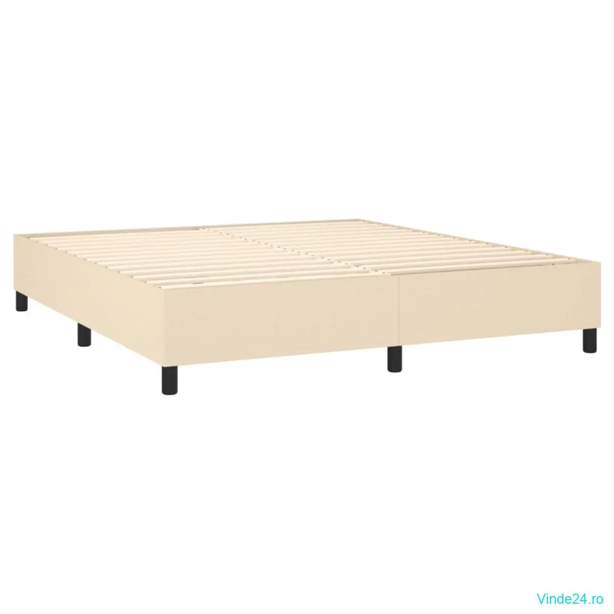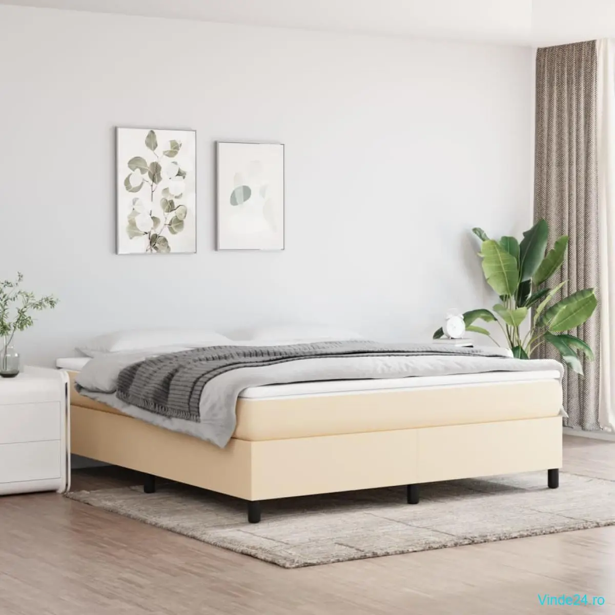 vidaXL Pat box spring cu saltea, crem, 160x200 cm, material textil