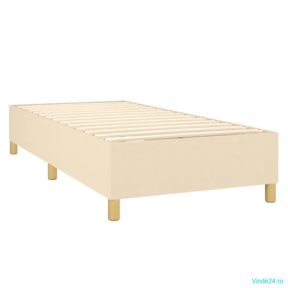 vidaXL Pat box spring cu saltea, crem, 80x200 cm, textil