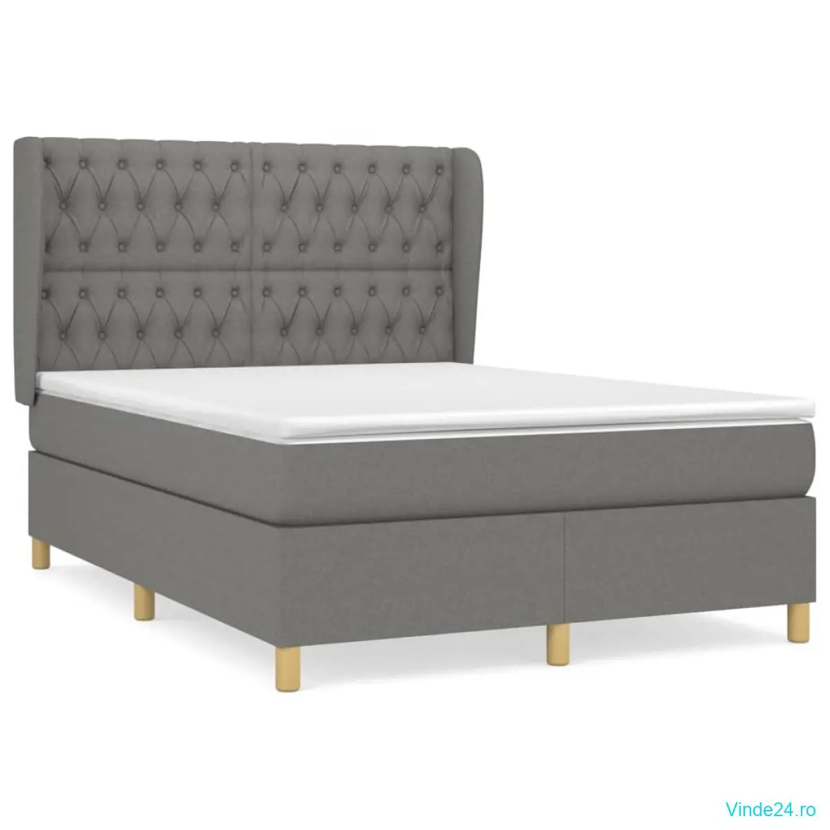 vidaXL Pat box spring cu saltea, gri închis, 140x200 cm, textil
