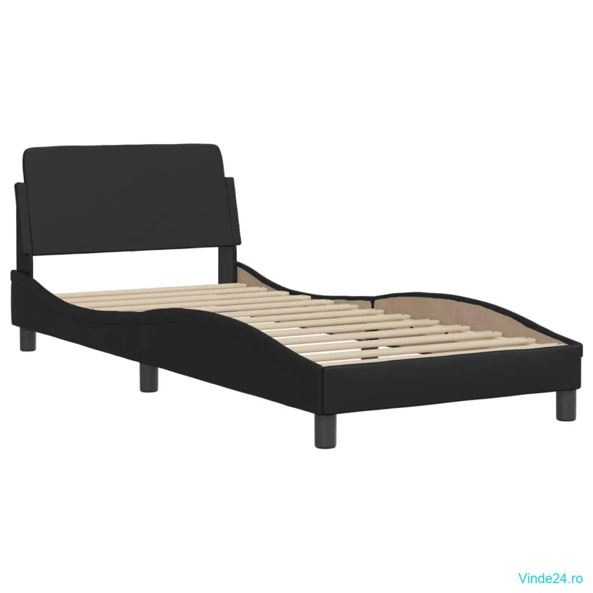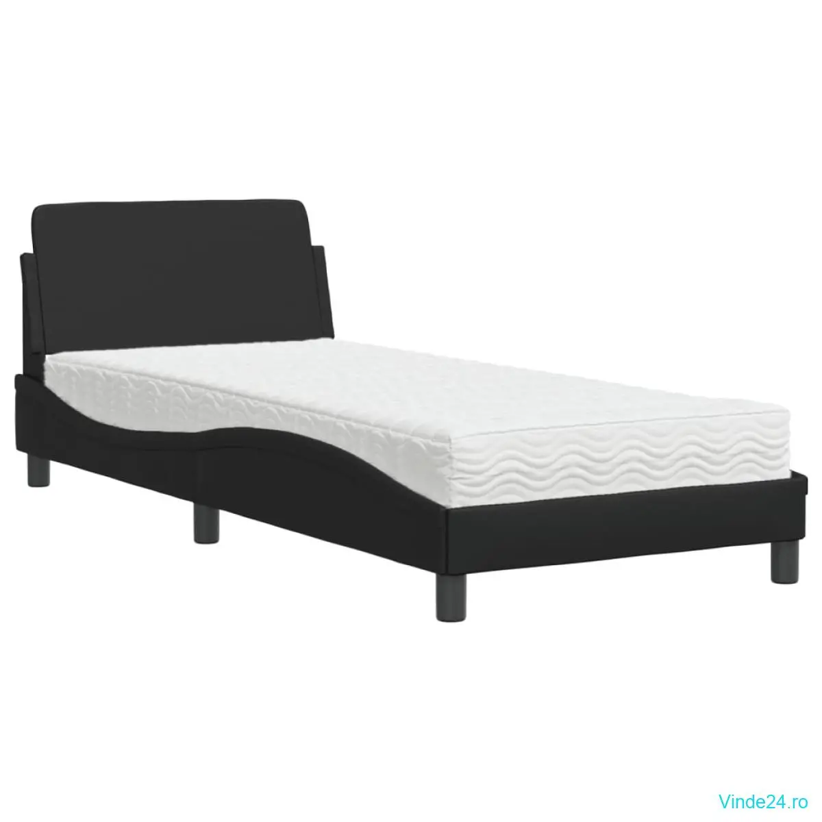 vidaXL Pat continental cu saltea, negru, 80x200 cm, piele ecologică
