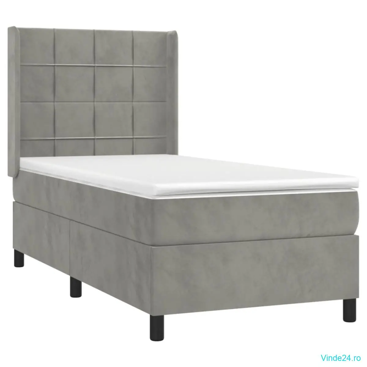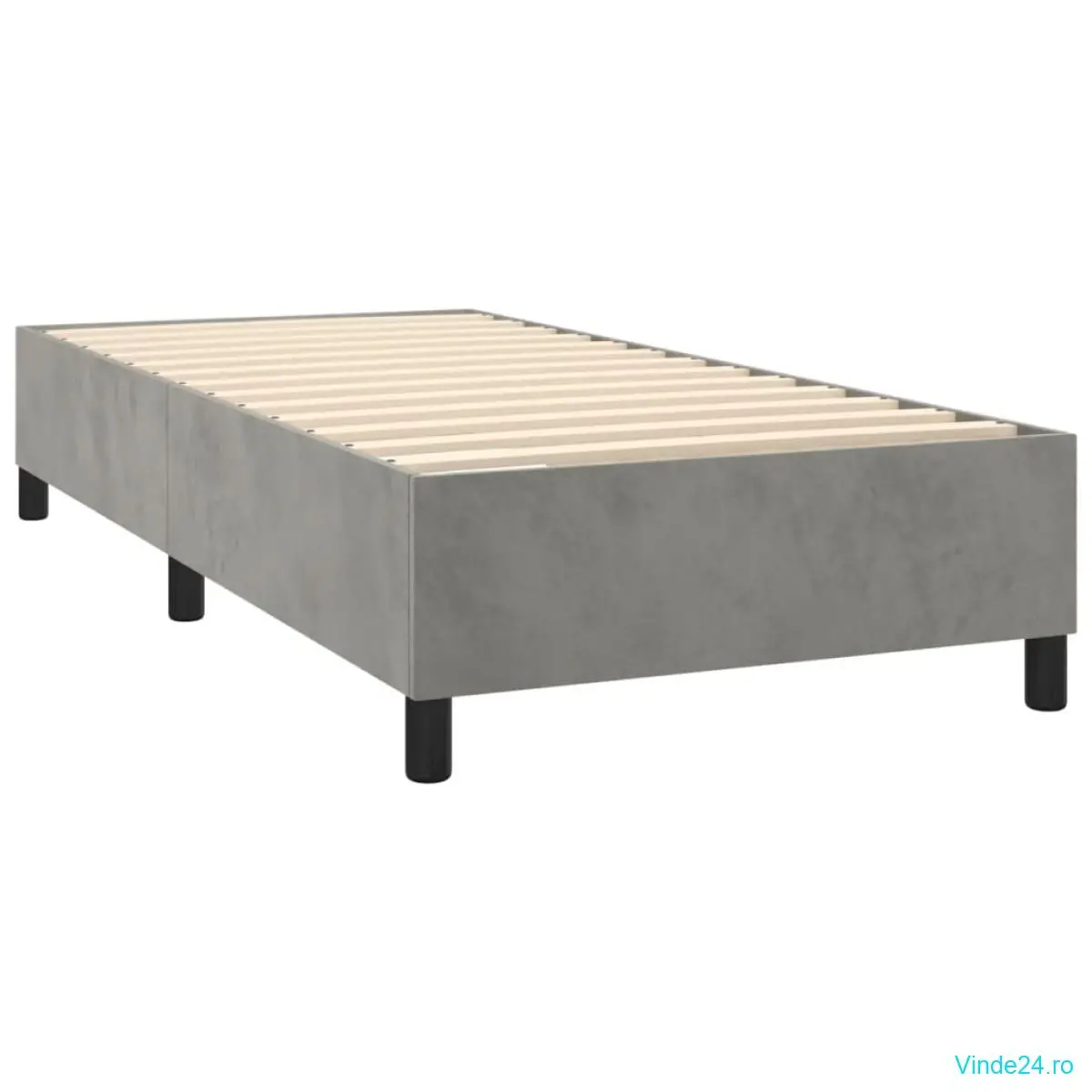 vidaXL Pat cu arcuri, saltea și LED, gri deschis, 90x190 cm, catifea