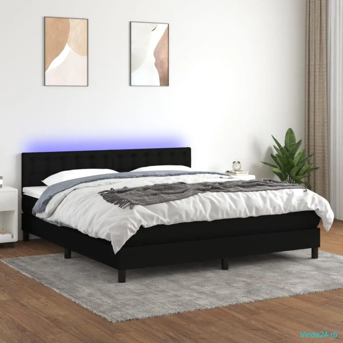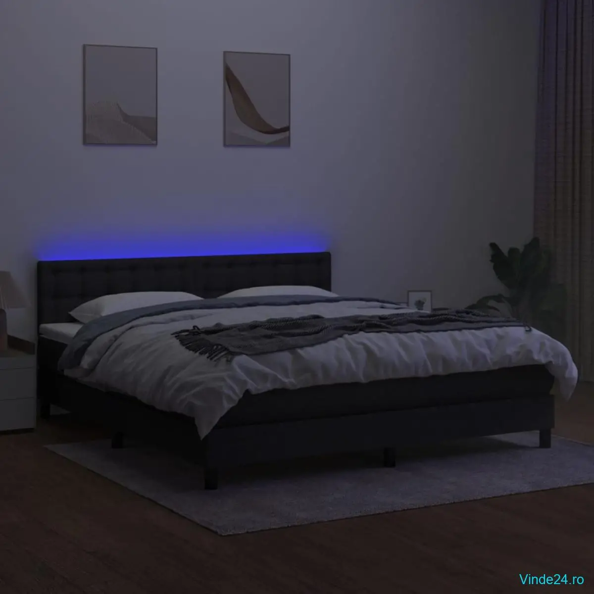 Folosiți acest pat cu arcuri, cu saltea și LED-uri, pentru a vă bucura de un somn odihnitor! Va fi punctul de atracție al dormitorului dvs.