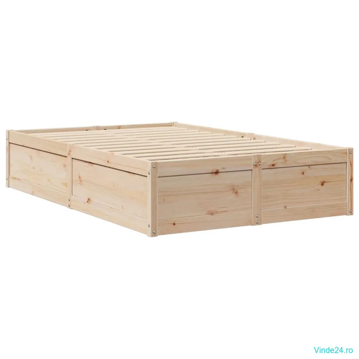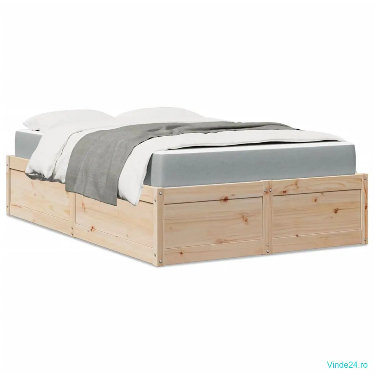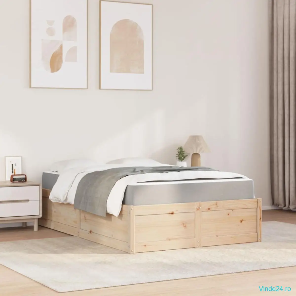 vidaXL Pat cu saltea, 120x200 cm, lemn masiv pin