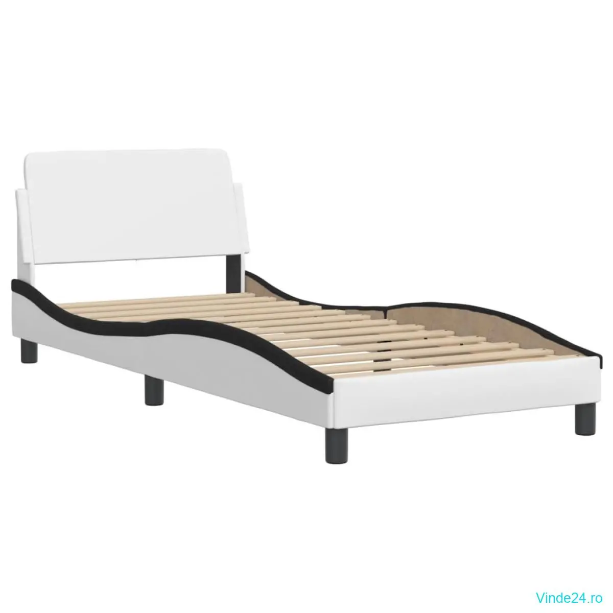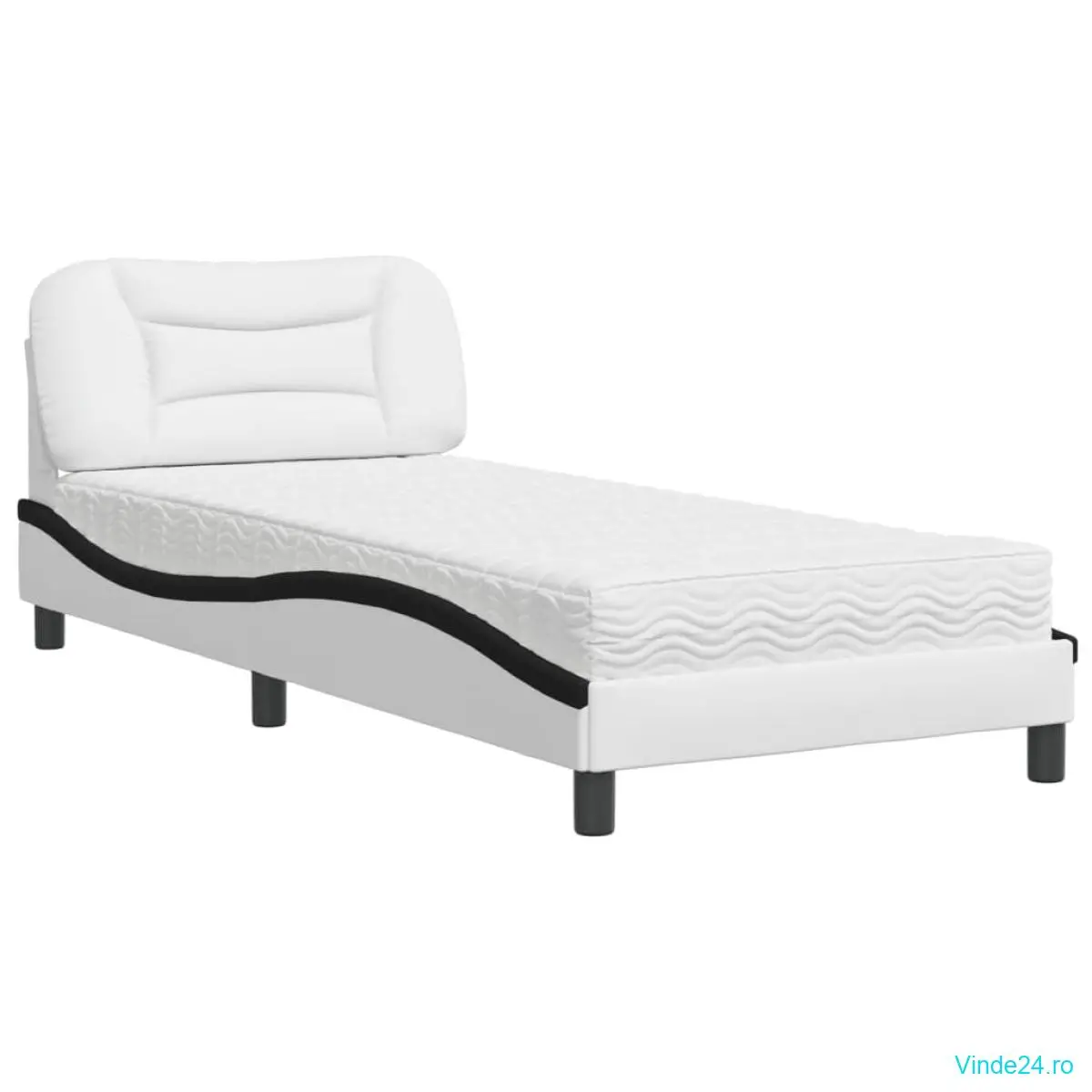 vidaXL Pat cu saltea, alb și negru, 90x190 cm, piele ecologică