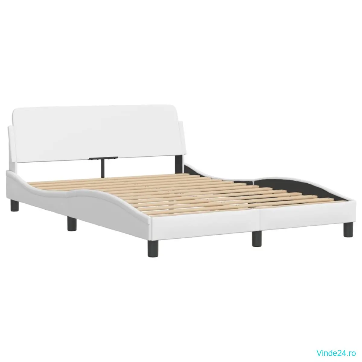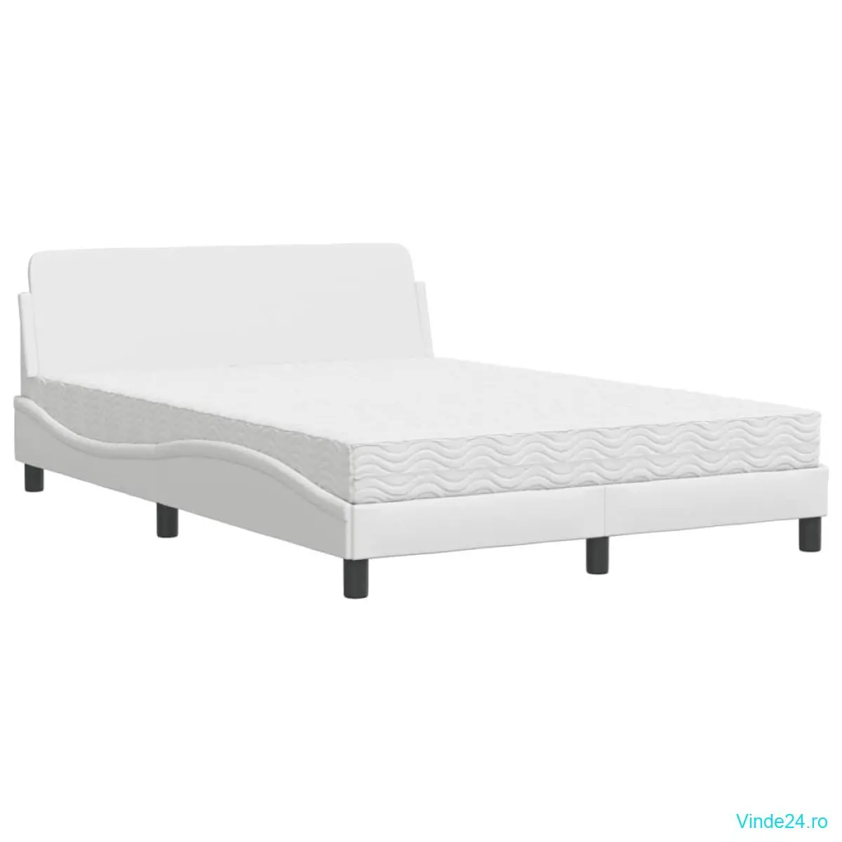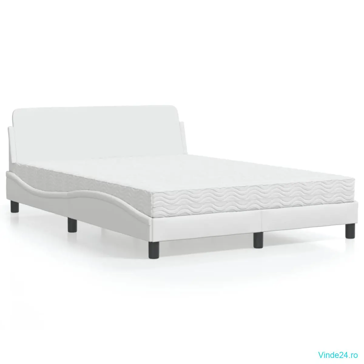vidaXL Pat cu saltea, alb, 120x200 cm, piele ecologică