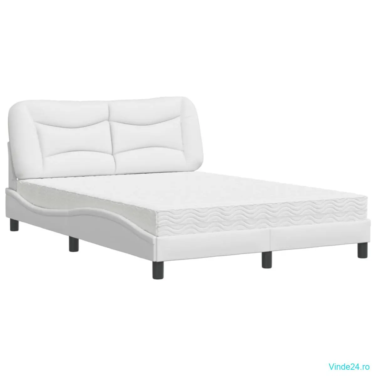 vidaXL Pat cu saltea, alb, 140x200 cm, piele ecologică