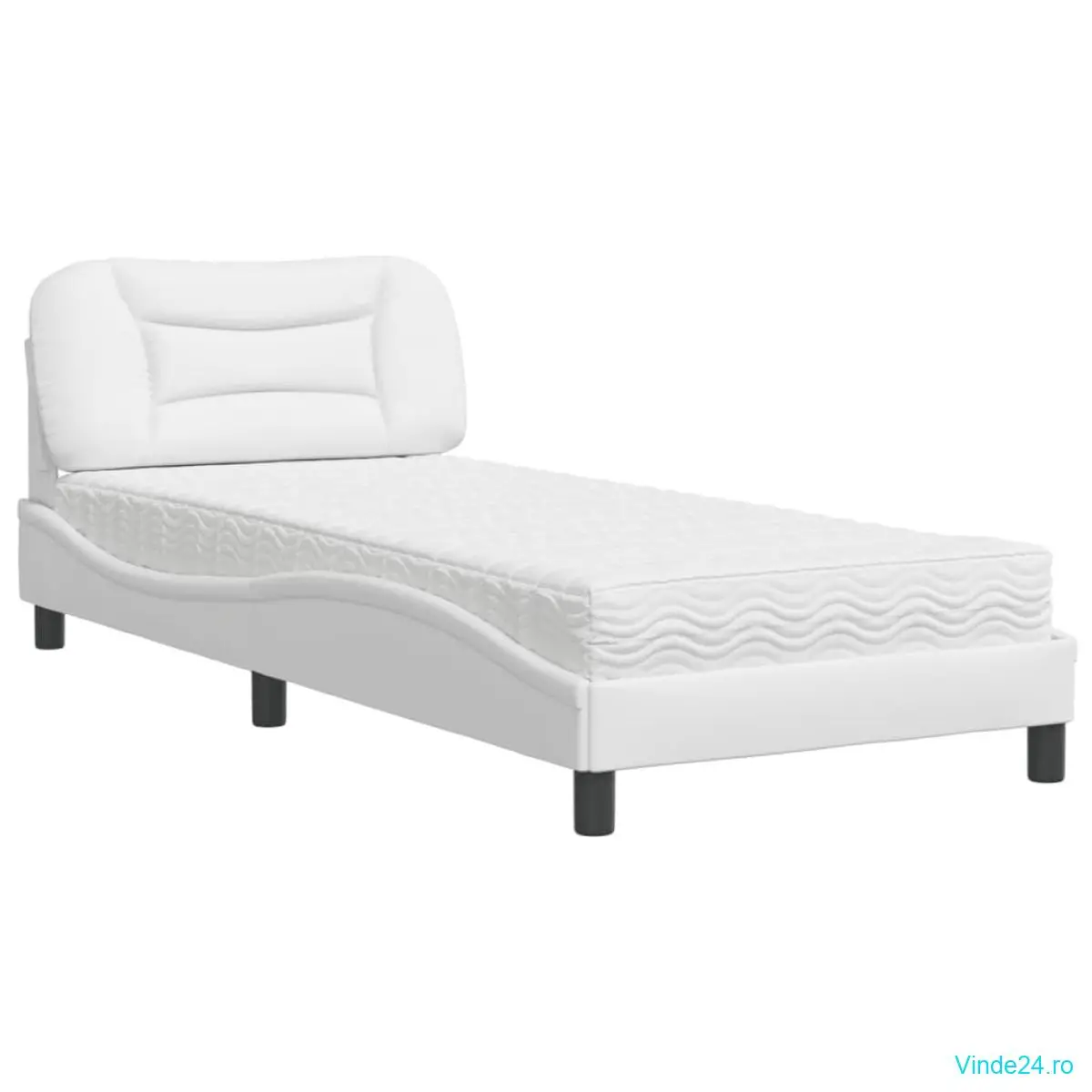 vidaXL Pat cu saltea, alb, 80x200 cm, piele ecologică