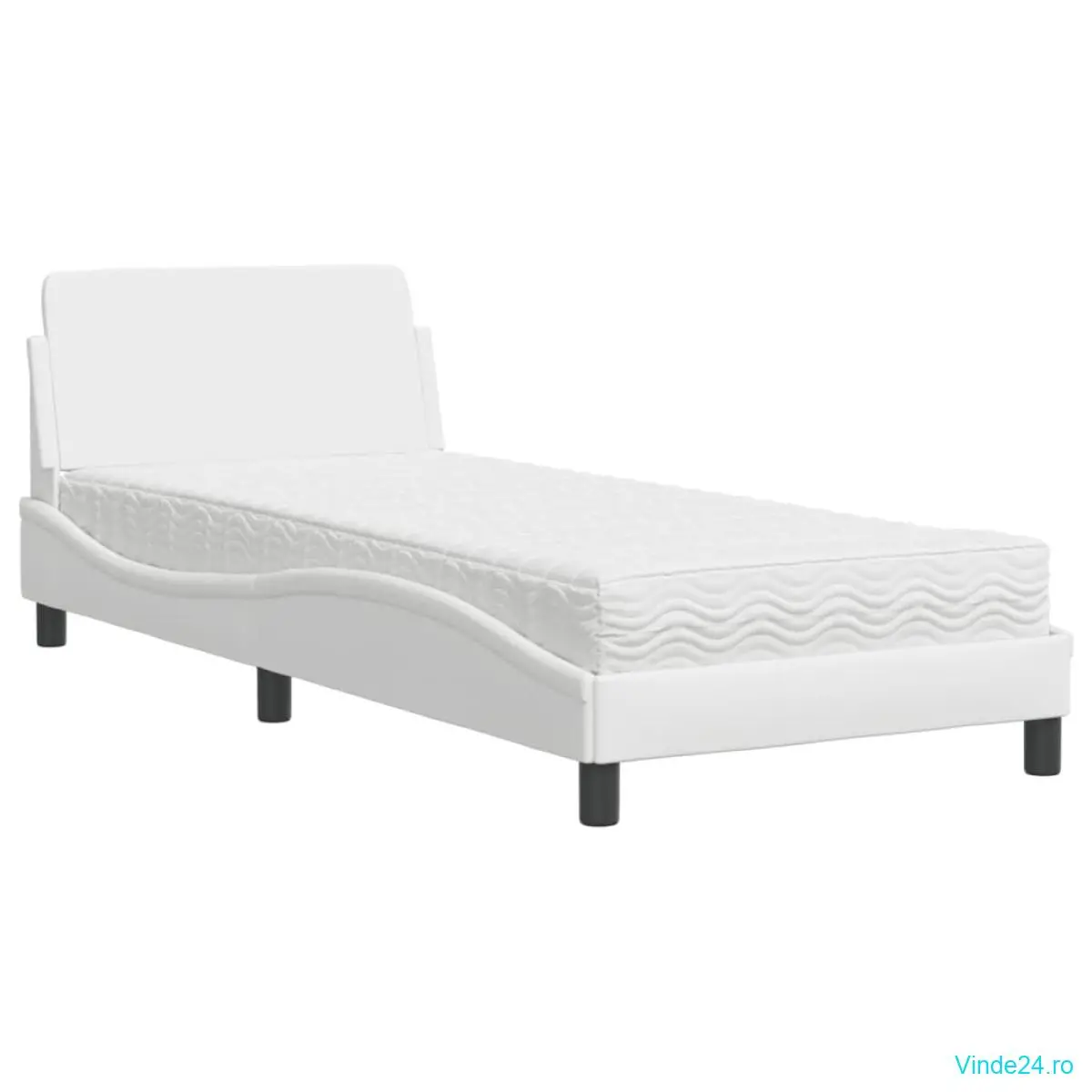 vidaXL Pat cu saltea, alb, 90x200 cm, piele ecologică