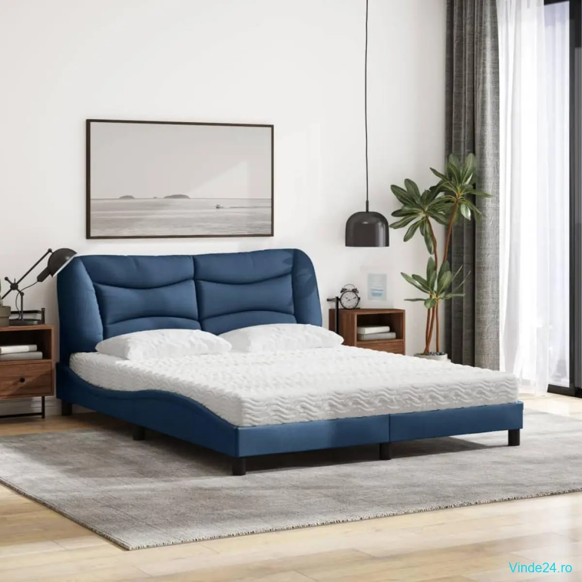 vidaXL Pat cu saltea, albastru, 160x200cm, material textil