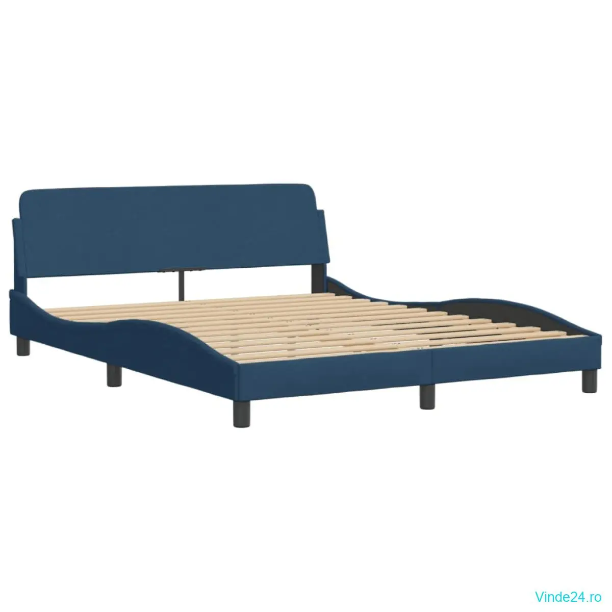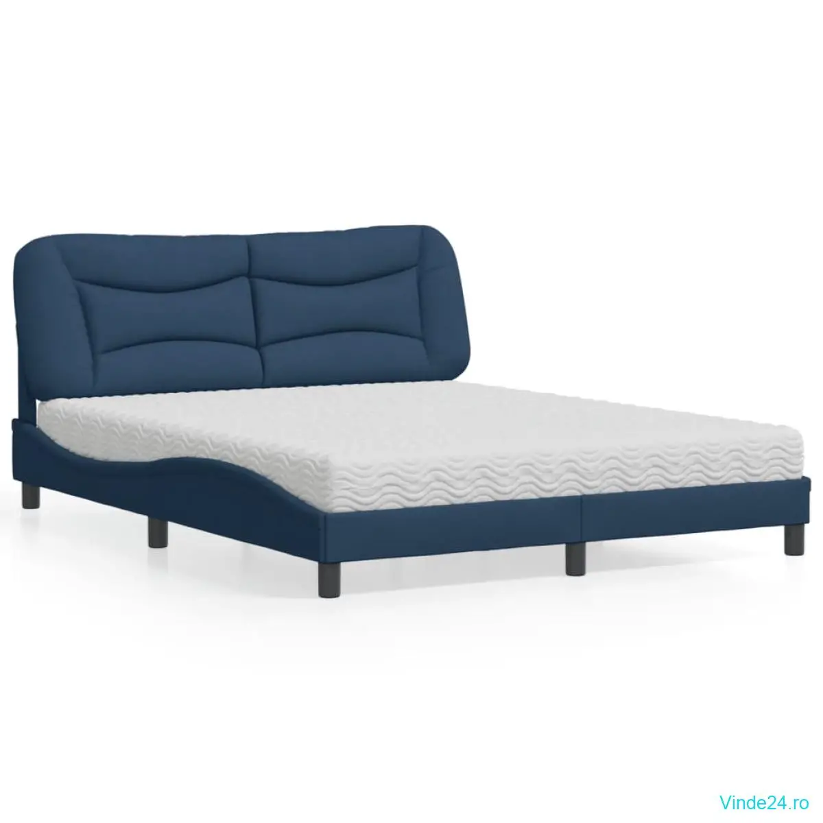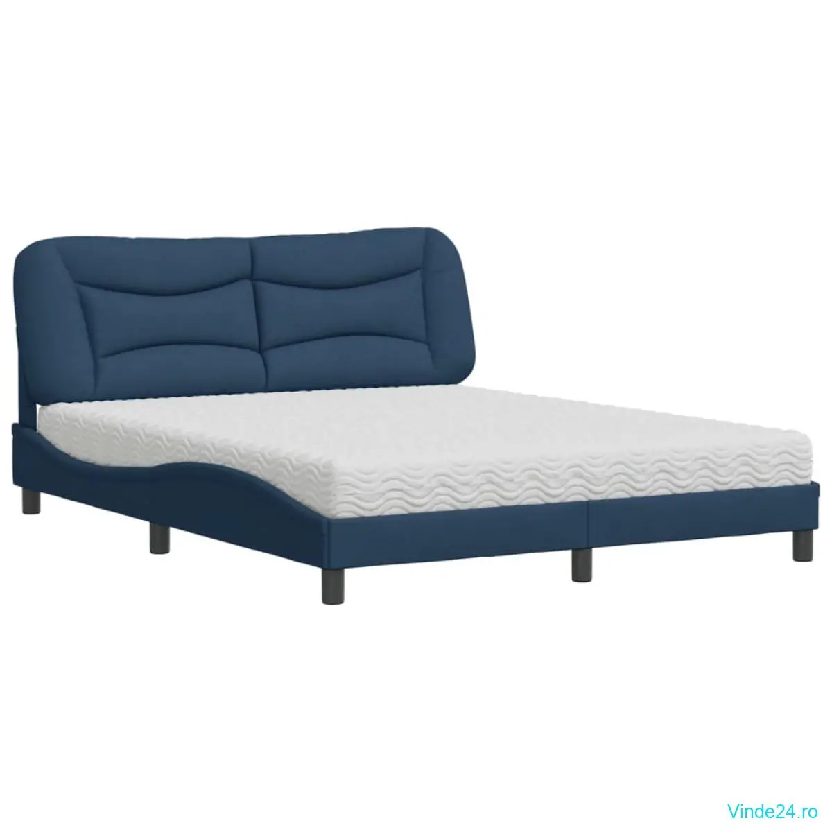 vidaXL Pat cu saltea, albastru, 160x200cm, material textil