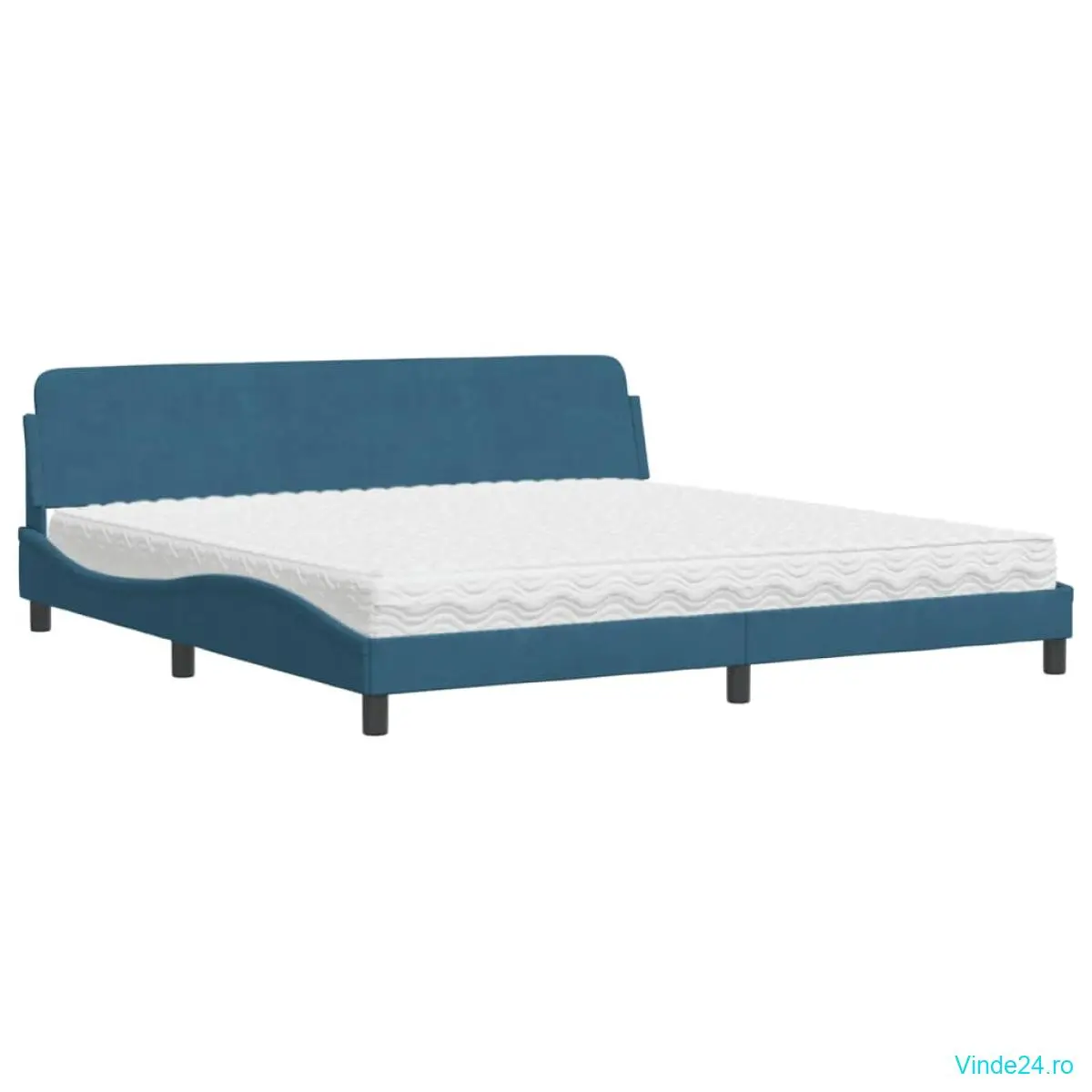 vidaXL Pat cu saltea, albastru, 200x200 cm, catifea