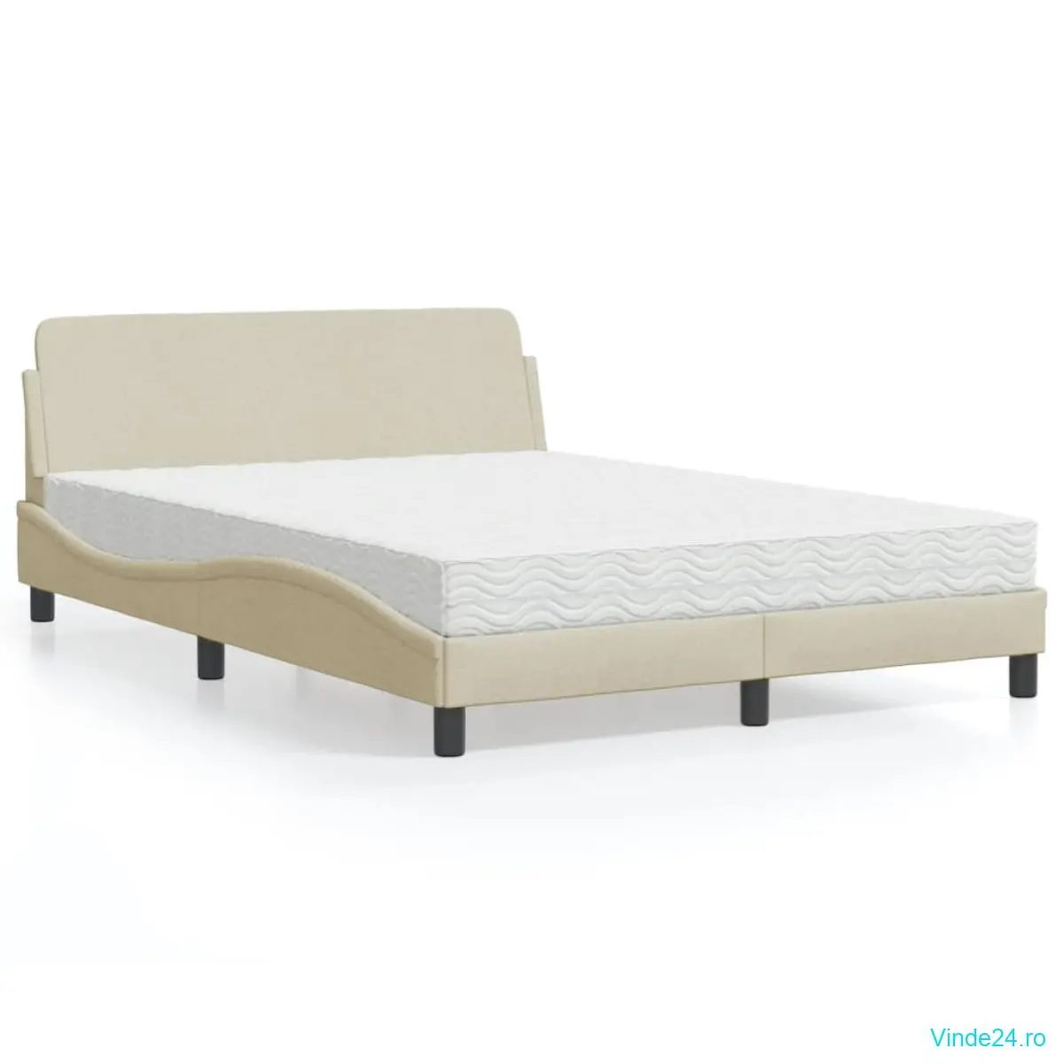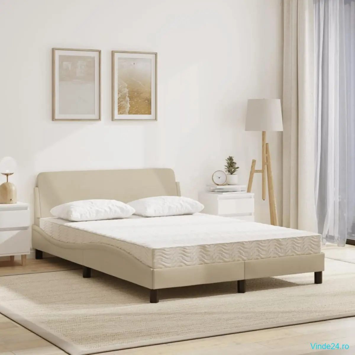 vidaXL Pat cu saltea, crem, 140x200 cm, material textil