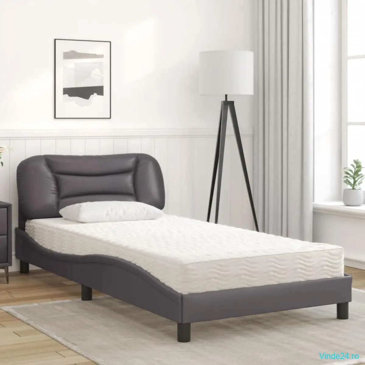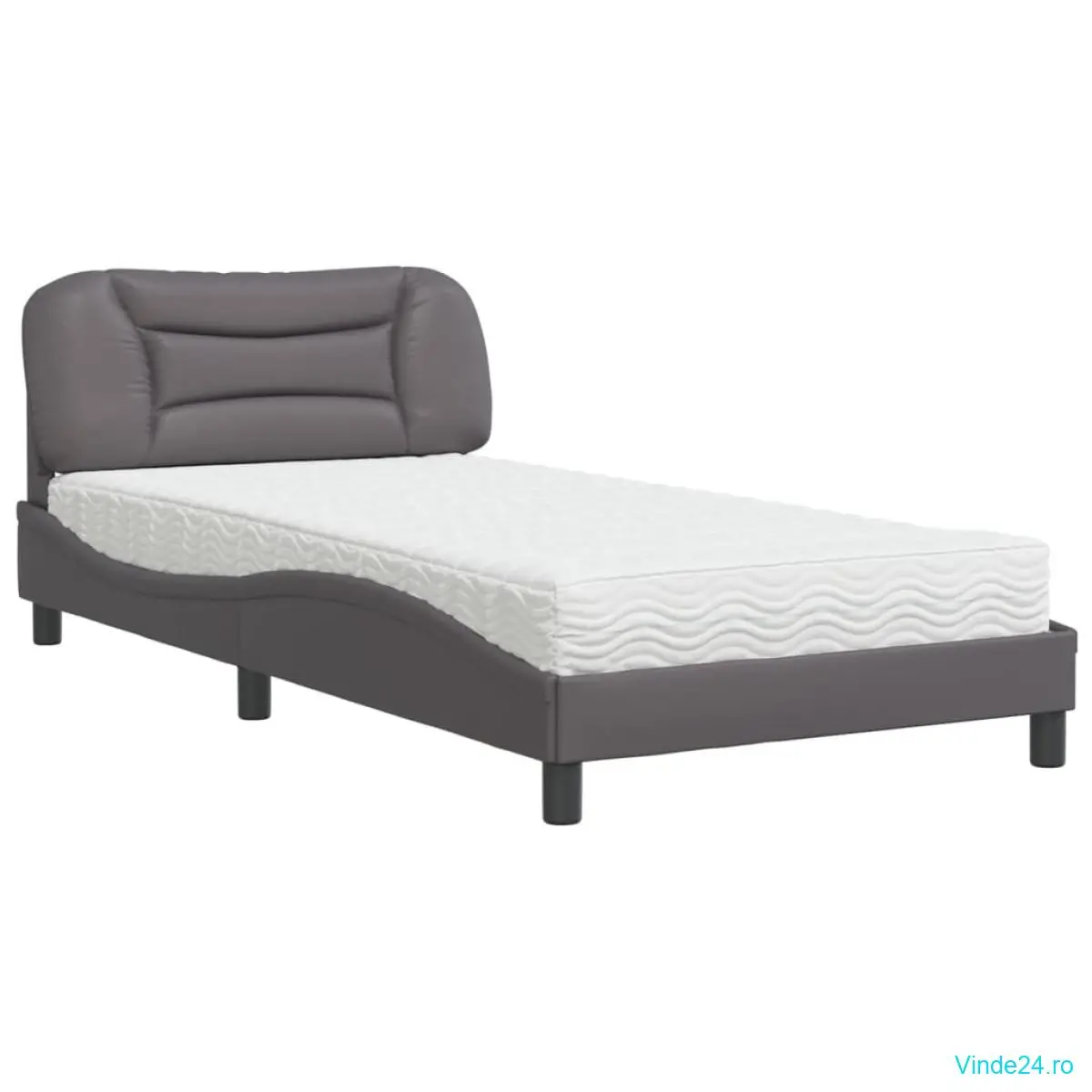 vidaXL Pat cu saltea, gri, 100x200 cm, piele ecologică