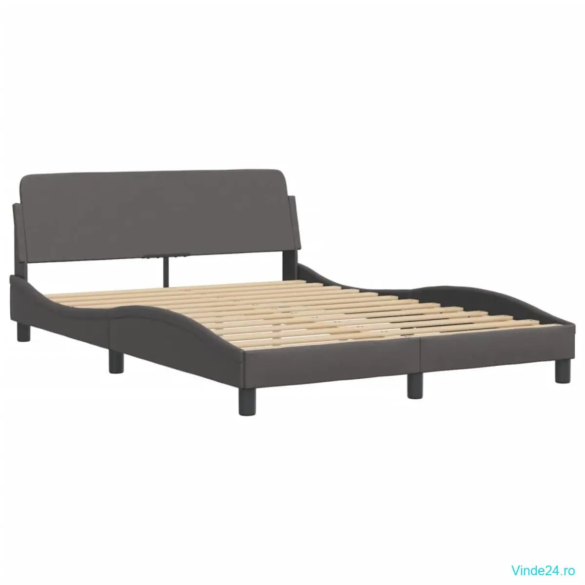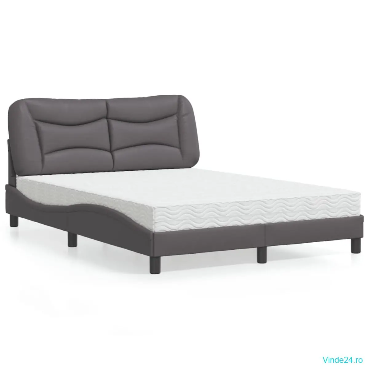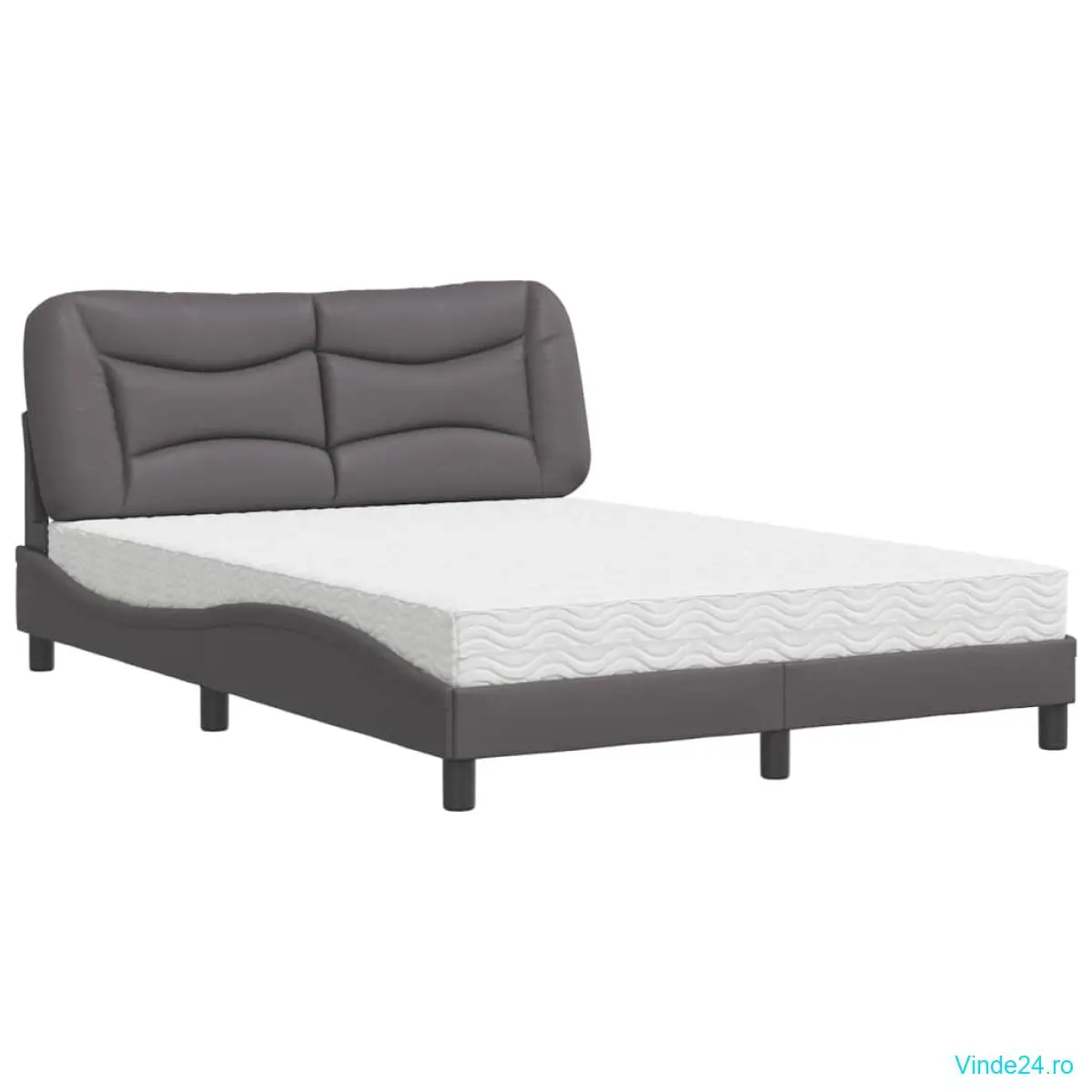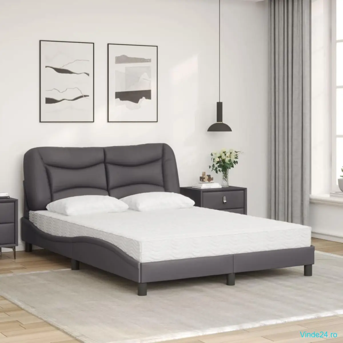 vidaXL Pat cu saltea, gri, 140x200 cm, piele ecologică