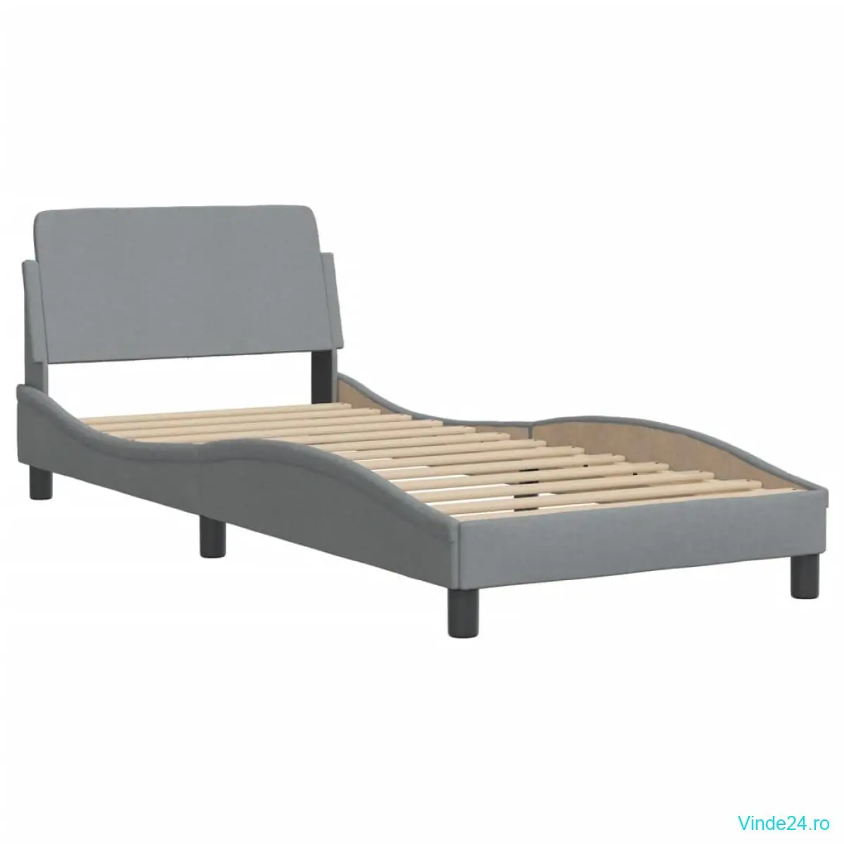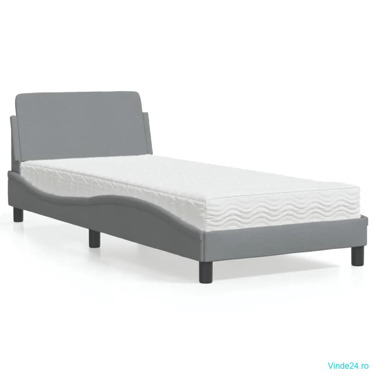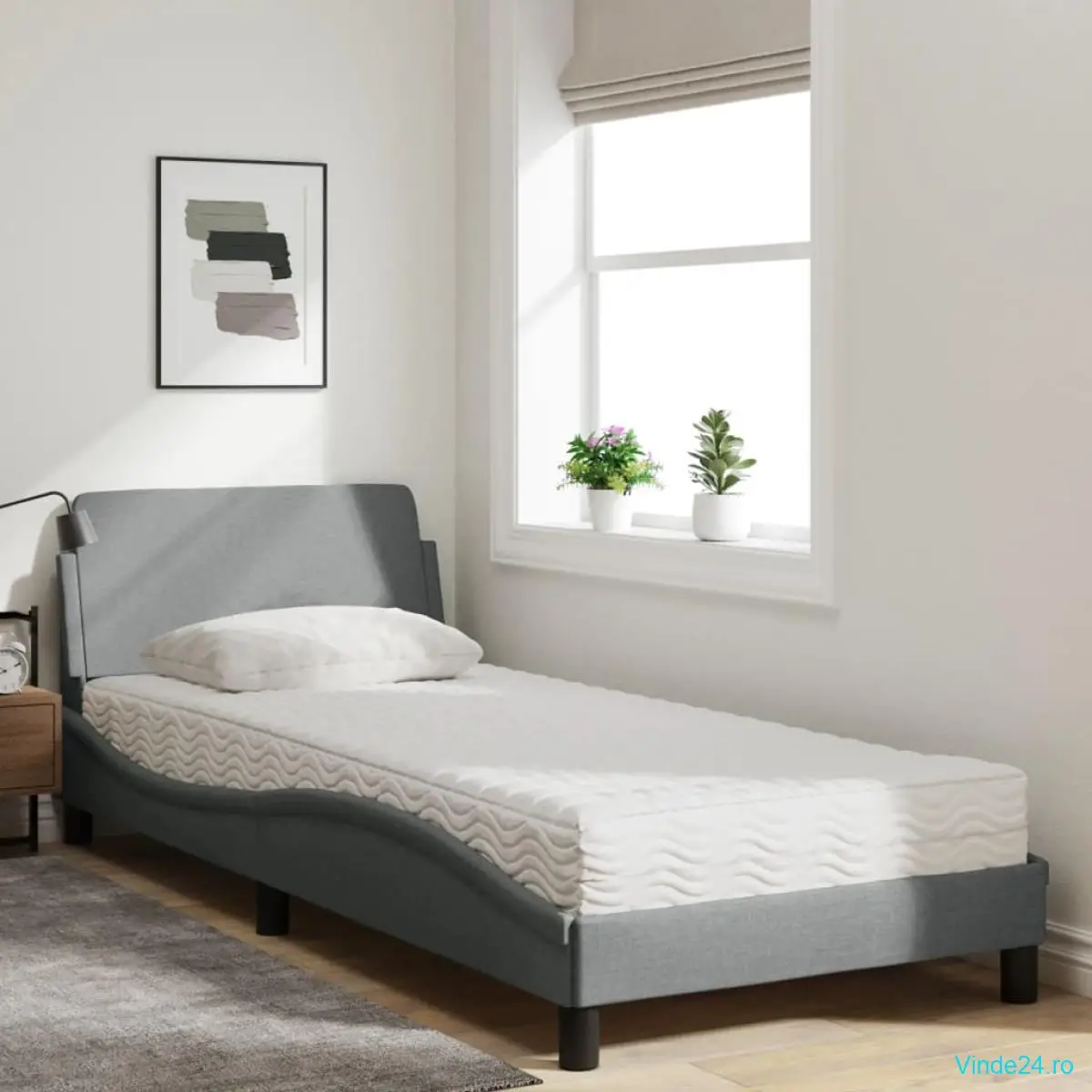 vidaXL Pat cu saltea, gri deschis, 90x190 cm, textil