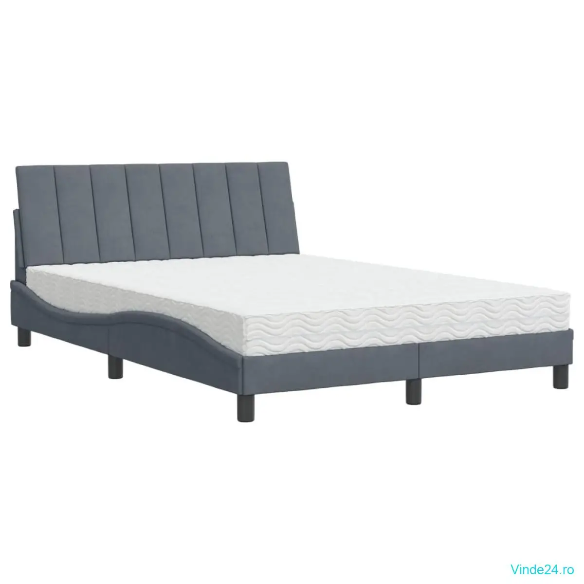 vidaXL Pat cu saltea, gri închis, 140x190 cm, catifea