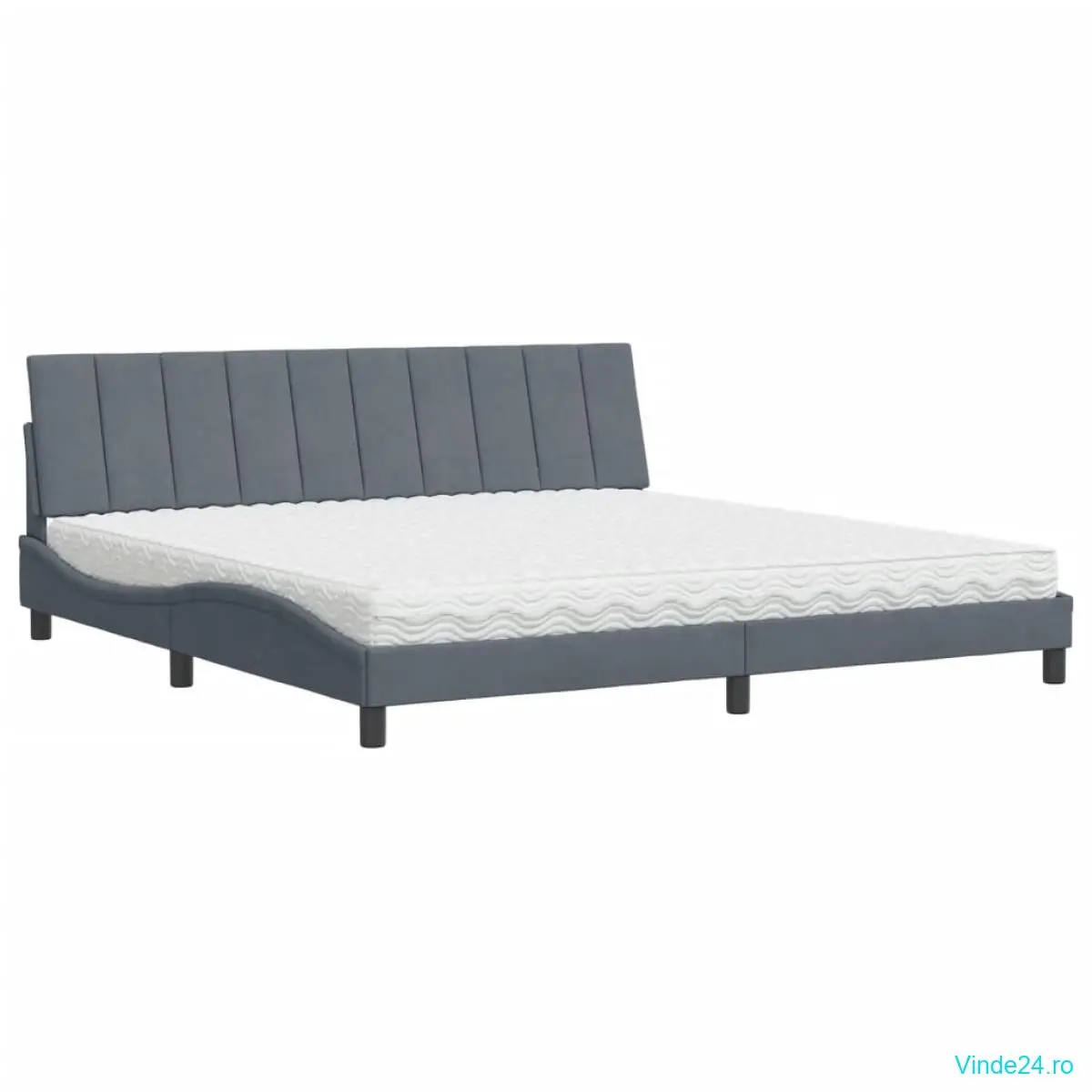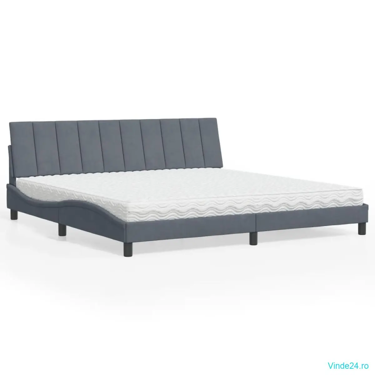 vidaXL Pat cu saltea, gri închis, 120x200 cm, catifea