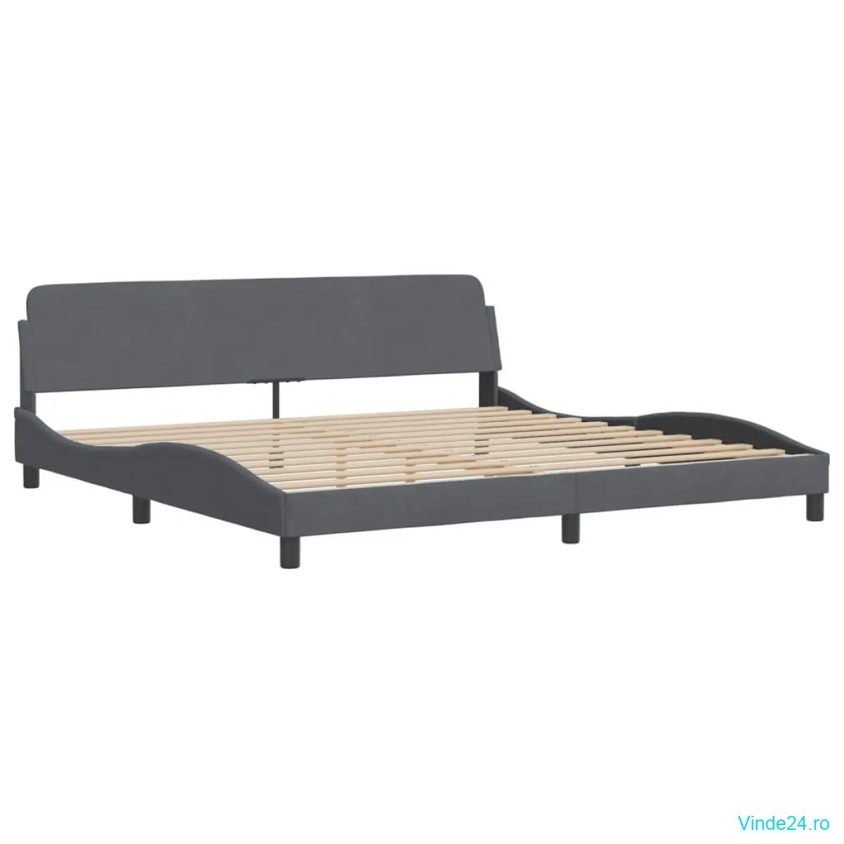 vidaXL Pat cu saltea, gri închis, 200x200 cm, catifea