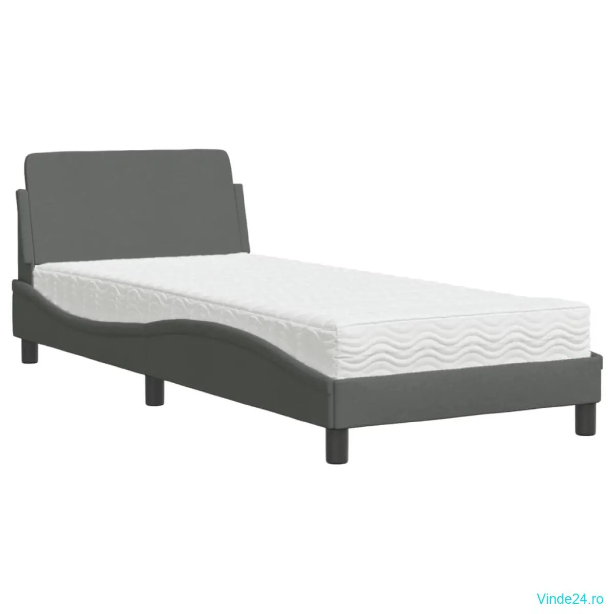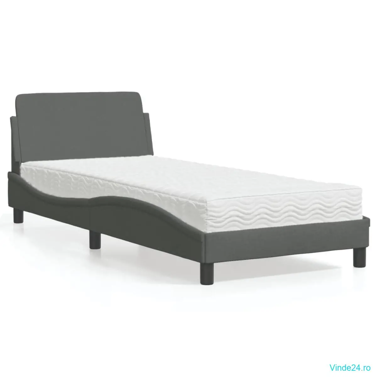 vidaXL Pat cu saltea, gri închis, 90x200 cm, textil