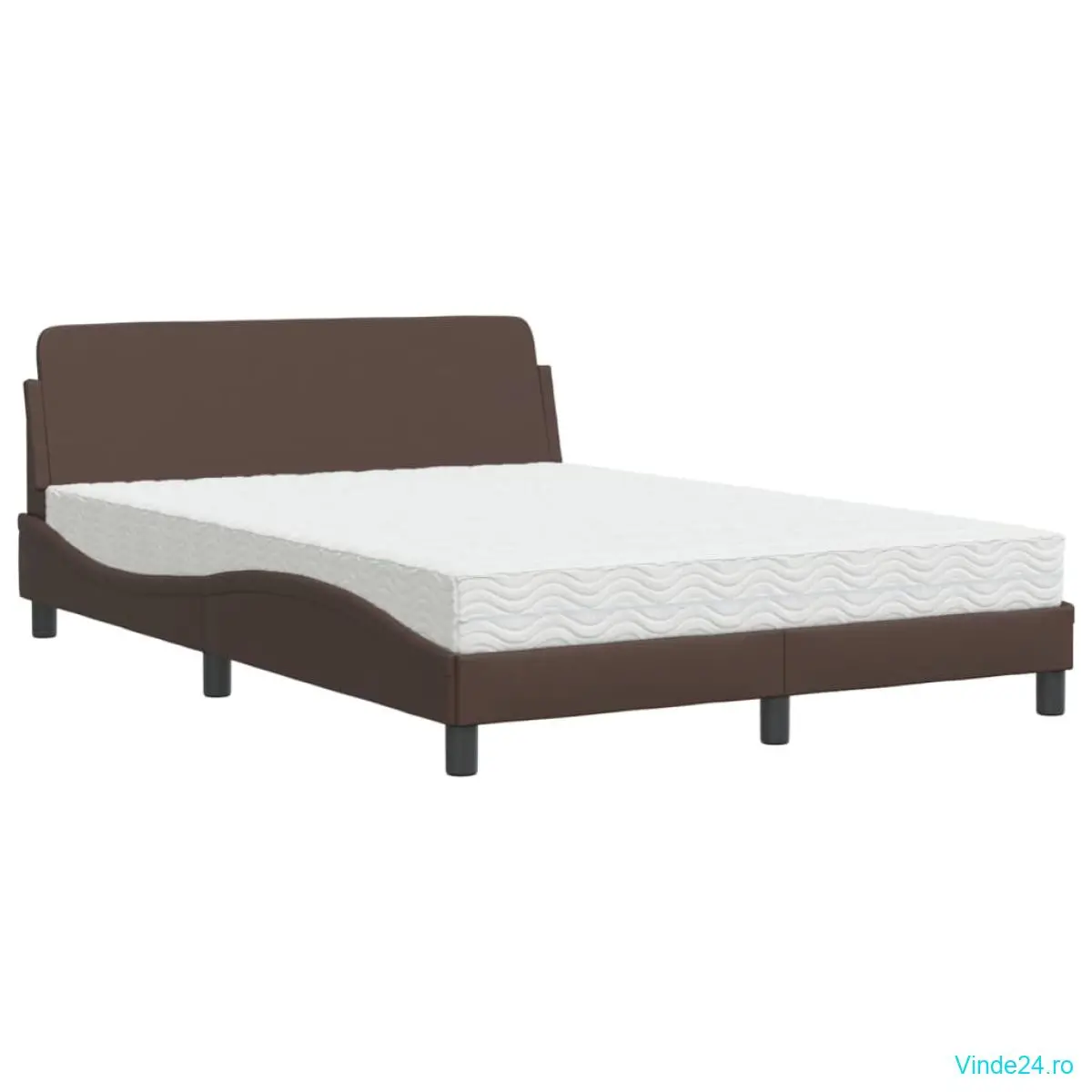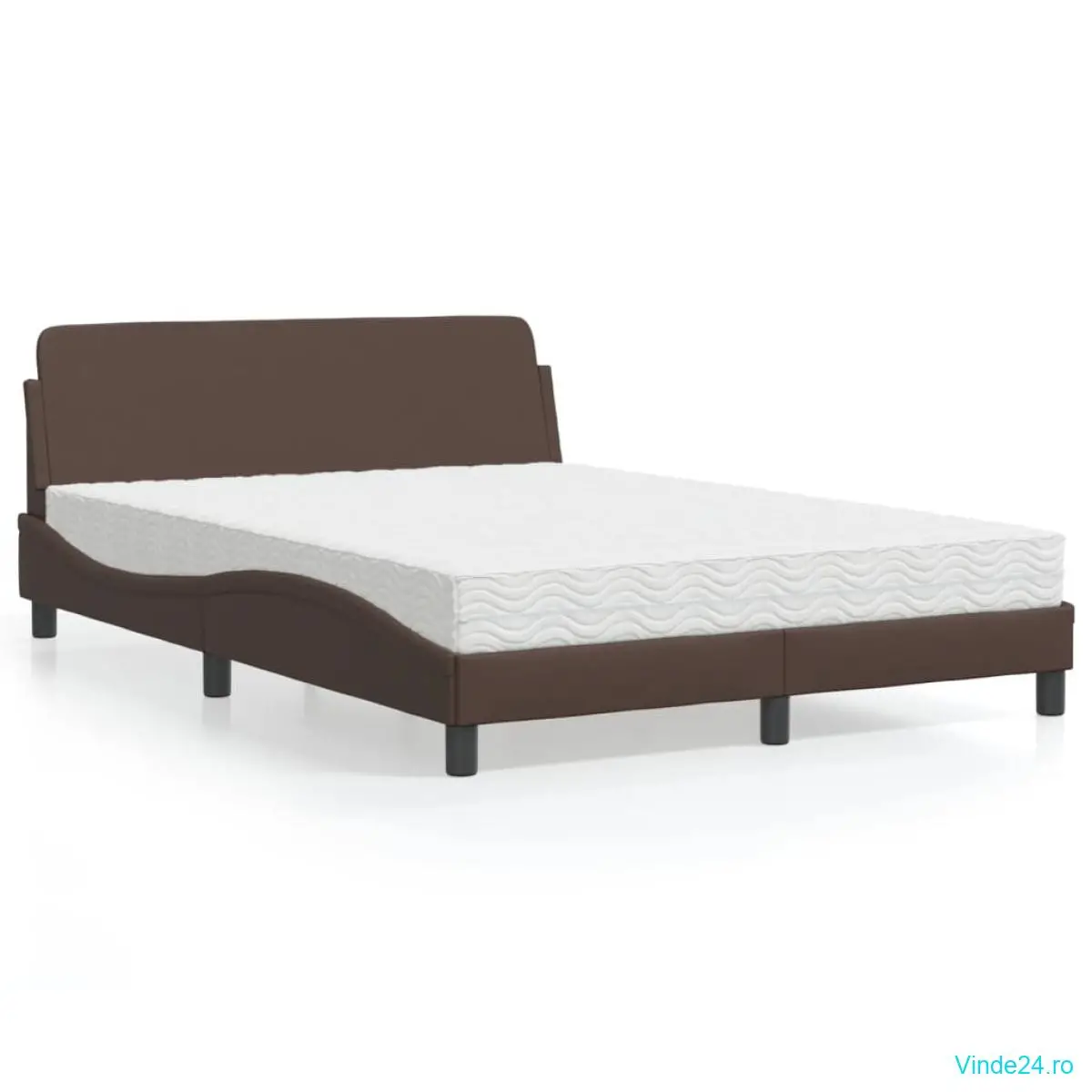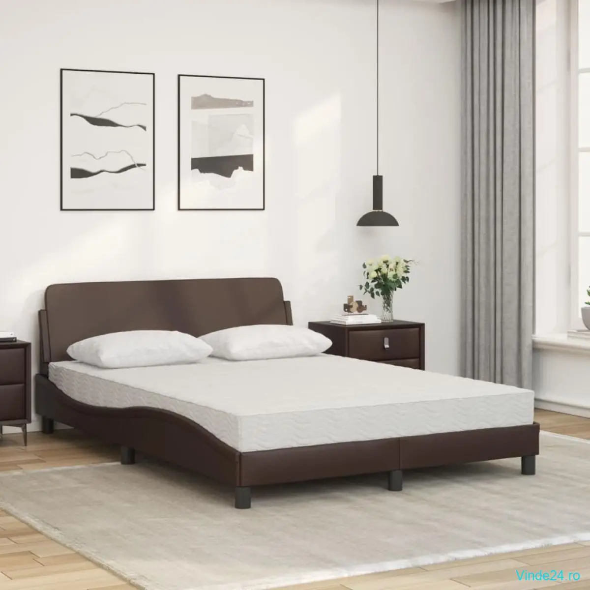 vidaXL Pat cu saltea, maro, 140x190 cm, piele ecologică